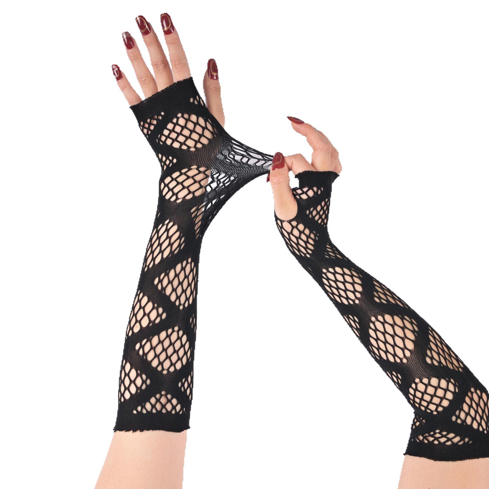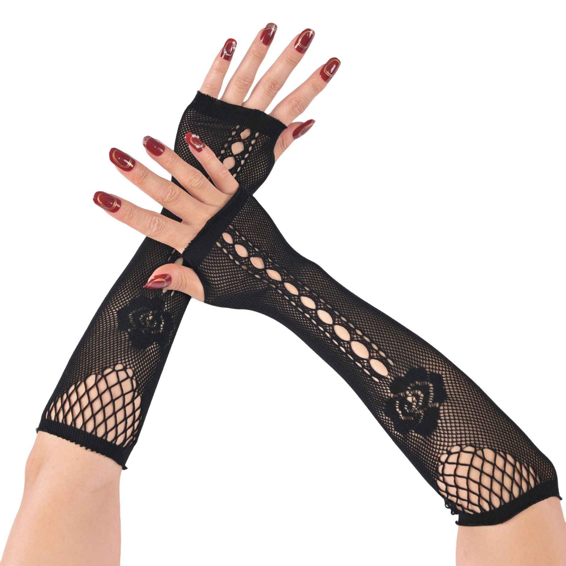 メーカー卸売り粗網漁網弾力手袋セクシー長手袋パンク半指夜店マナー手袋クロスボーダー