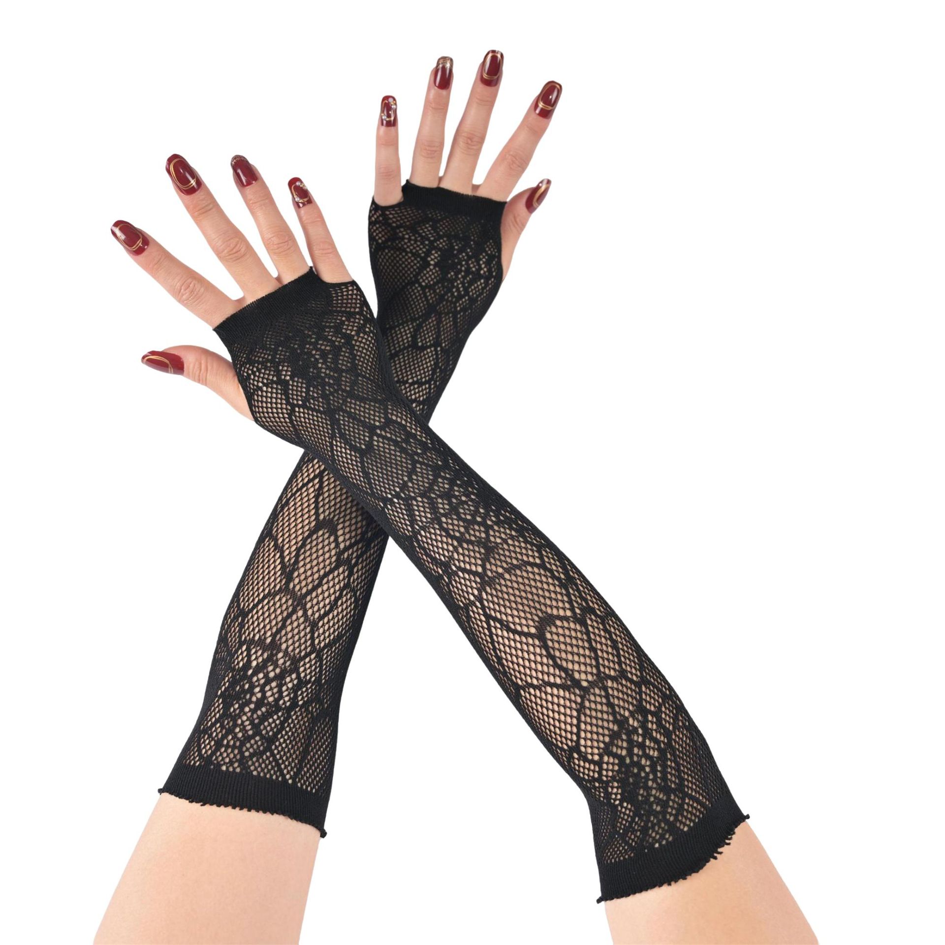 蜘蛛の巣手袋ハロウィン装飾コスプレパフォーマンススリーブミッドレングスメッシュハーフフィンガー通気性メッシュ手袋