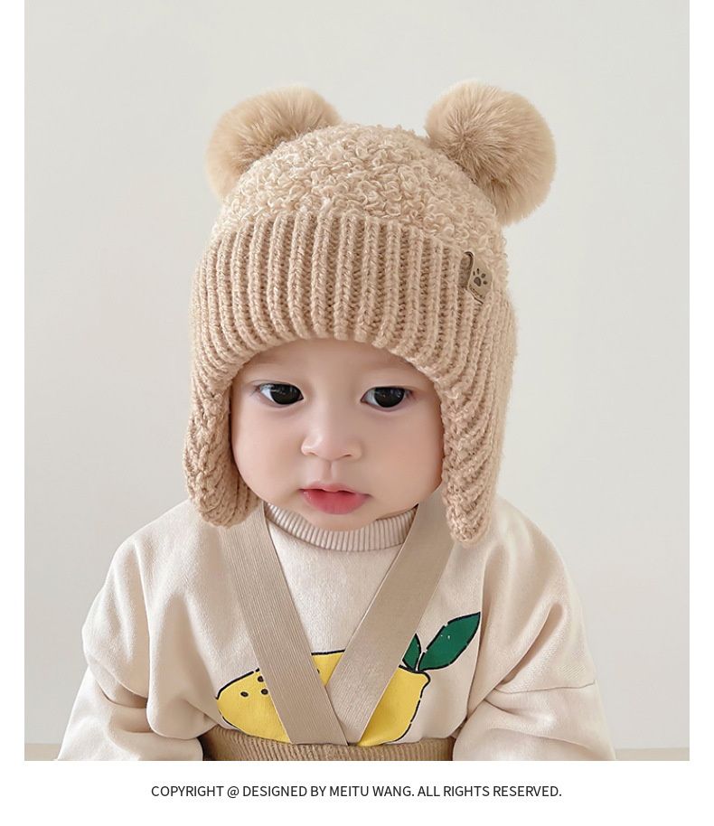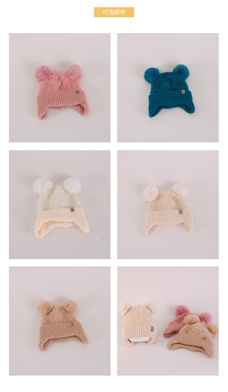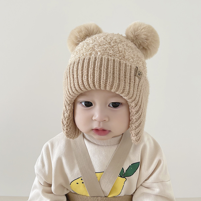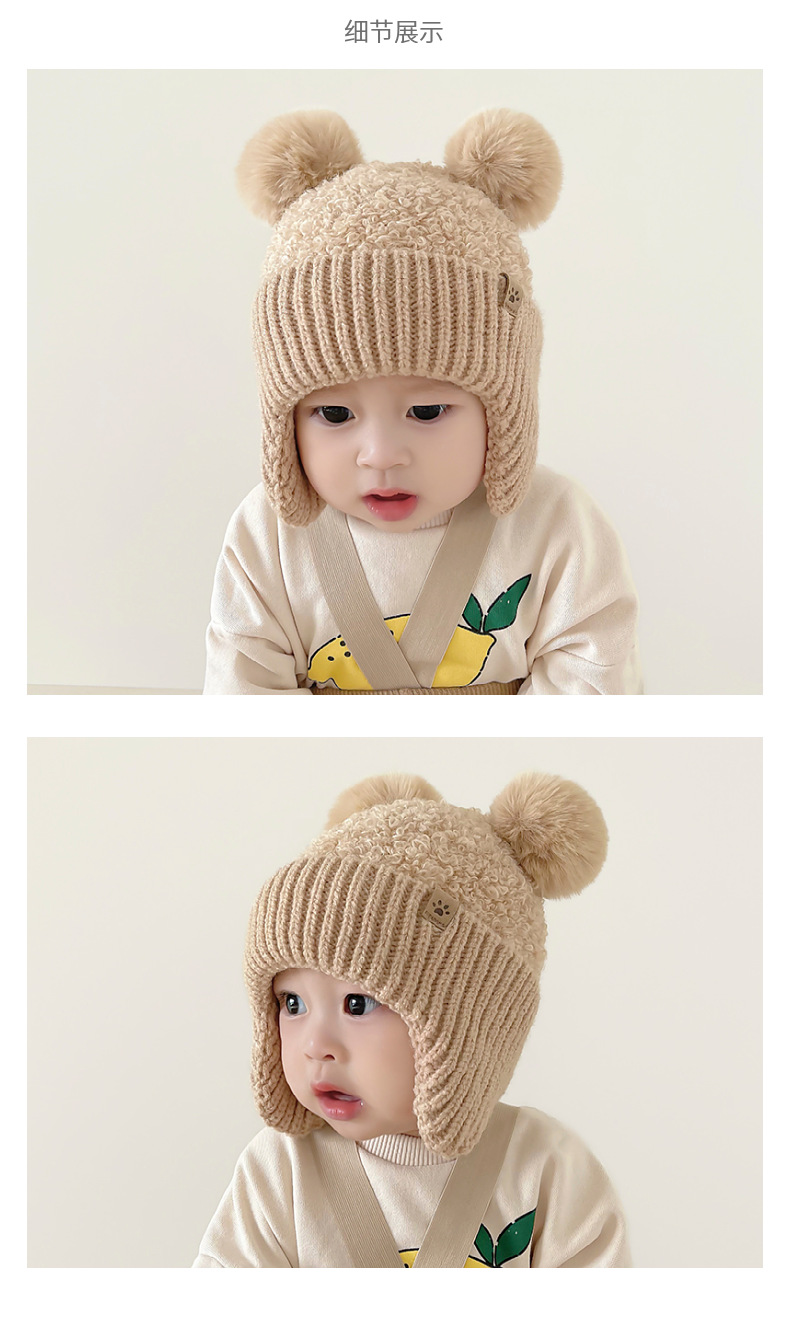 ベビー帽子 秋冬 新生児 ニット帽 男女兼用 保温 耳当て付き ウール帽子 フード付き帽子 丸型