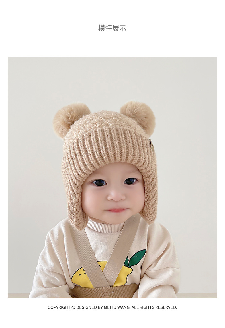 乳幼児毛糸帽子秋冬韓国版かわいいカエル男女赤ちゃん韓国版ニットカバー耳保温厚い