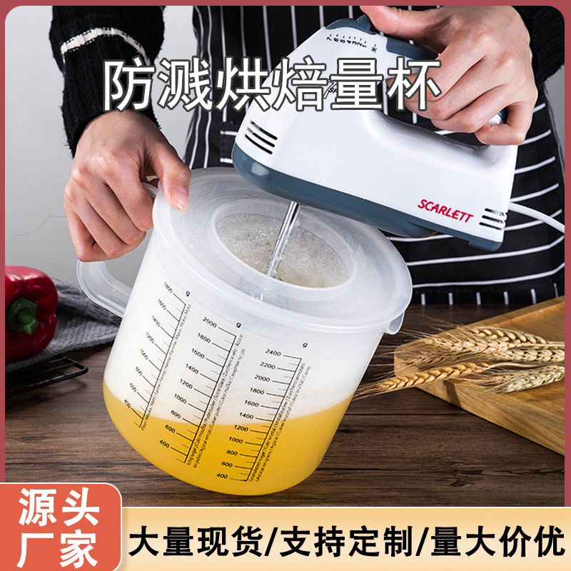 プラスチックベーキング計量カップ 2.5L 大容量飛沫防止卵ビーター蓋付き家庭用目盛り付き卵液フィルターホイップカップ