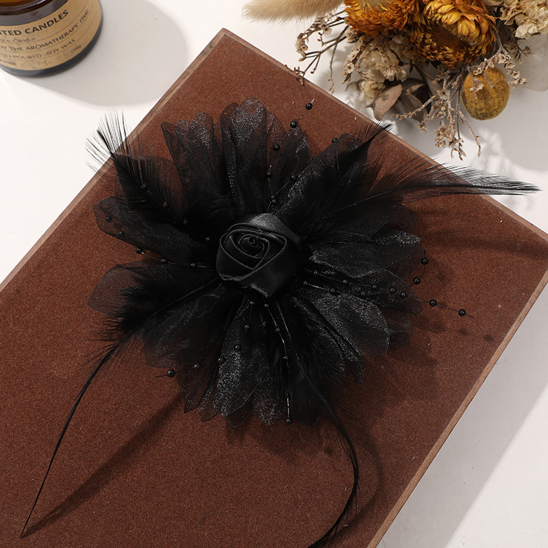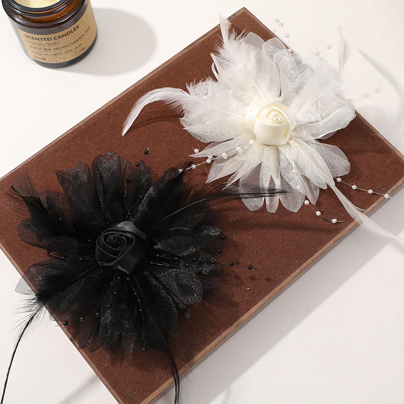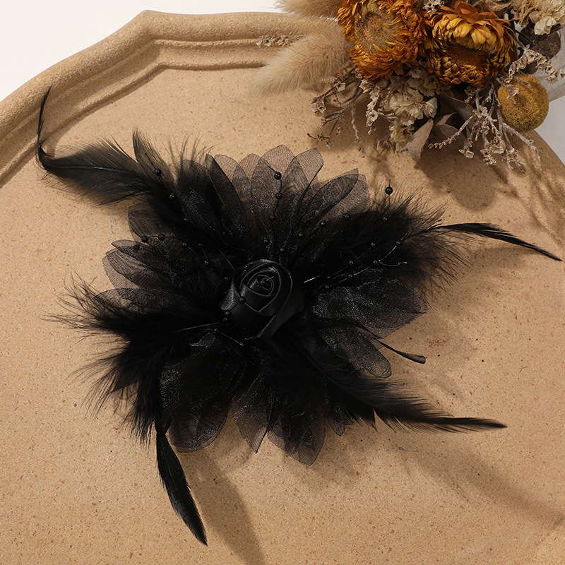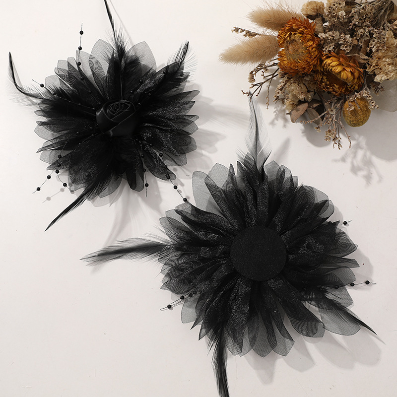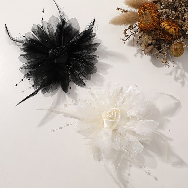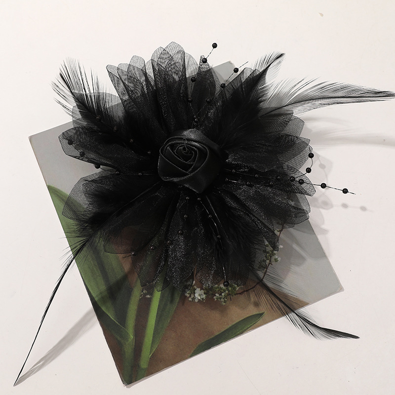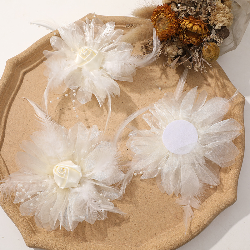 優しい風仙気羽毛網糸布芸バラdiy手作りヘアピン飾りアクセサリー卸売り