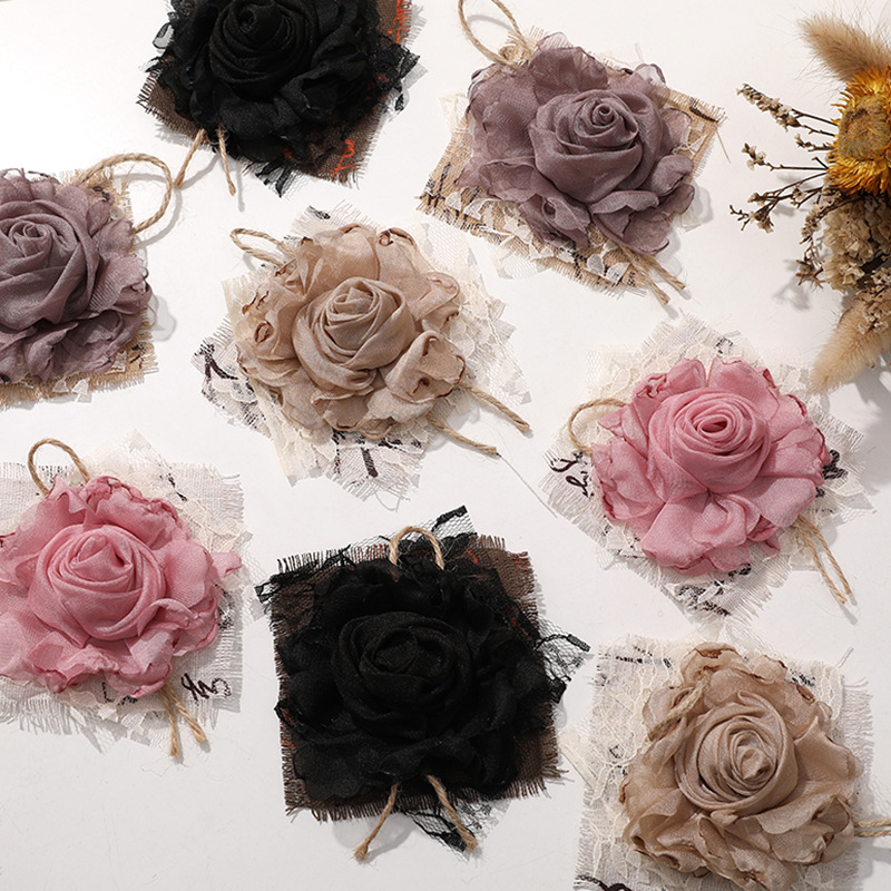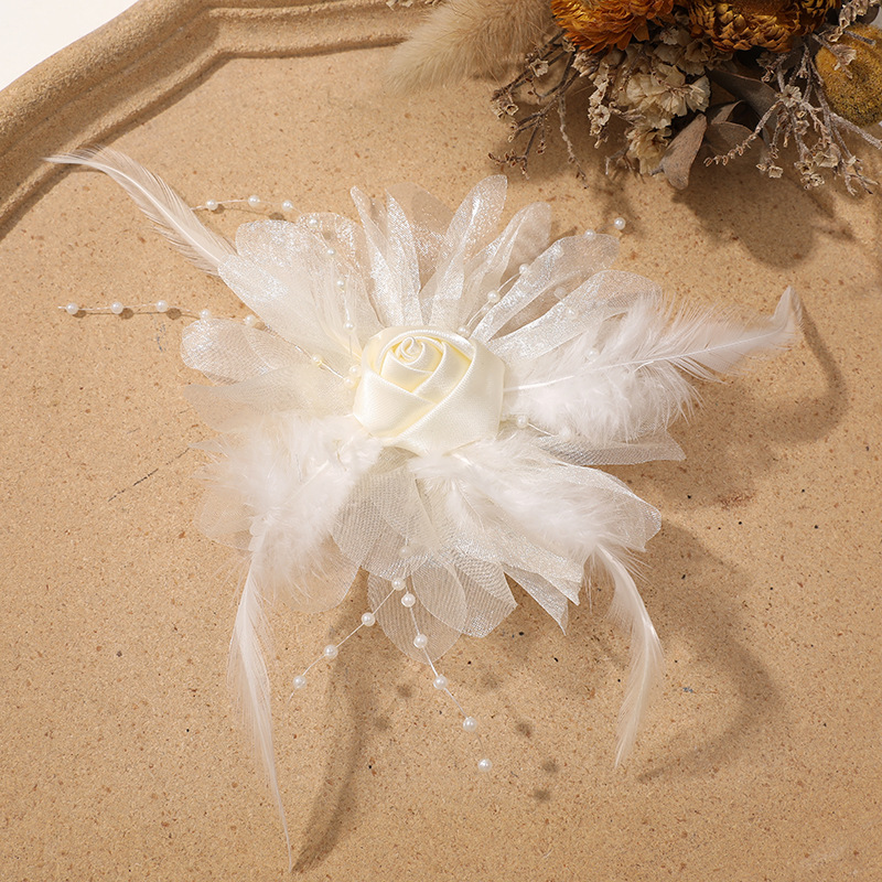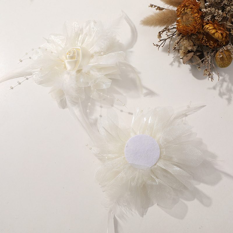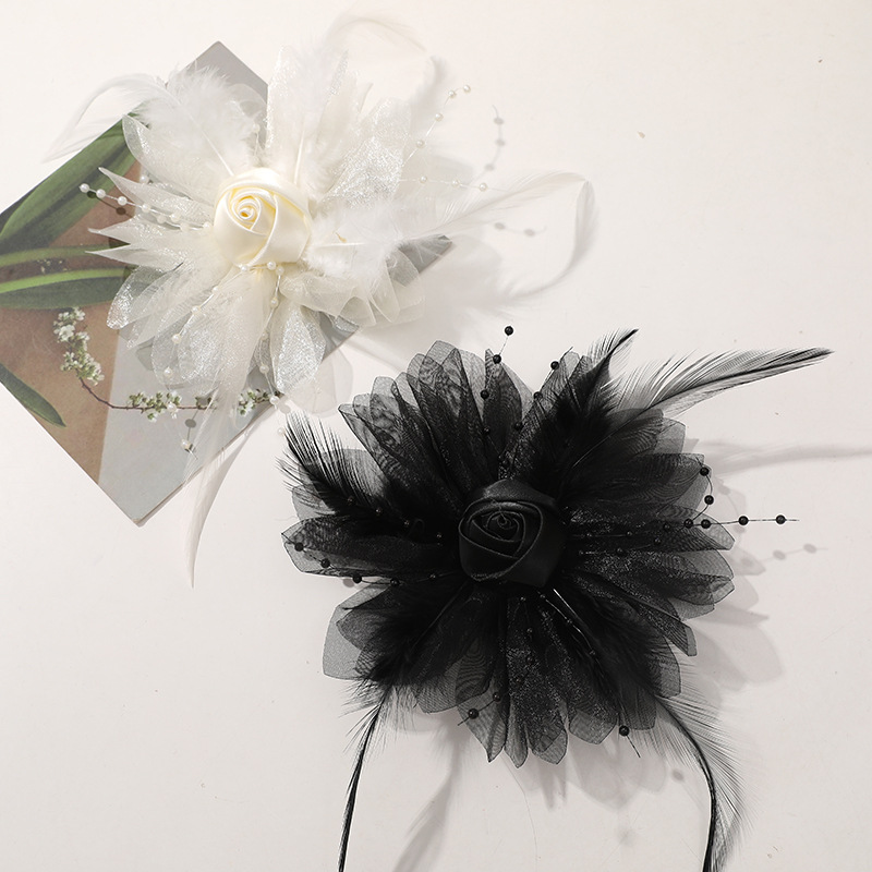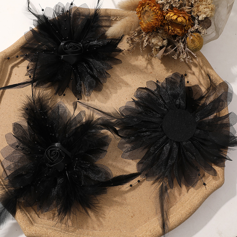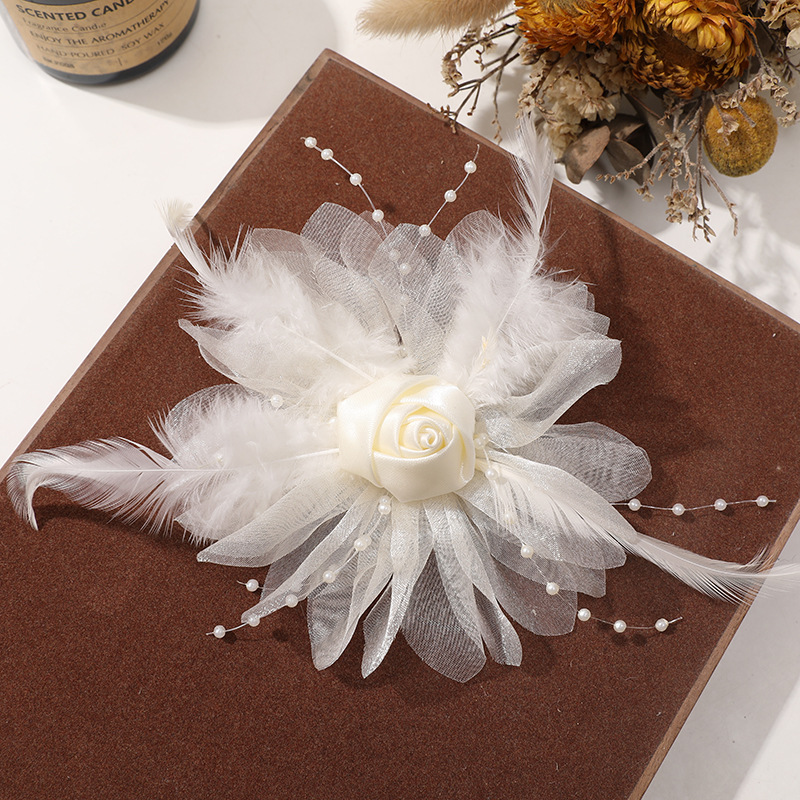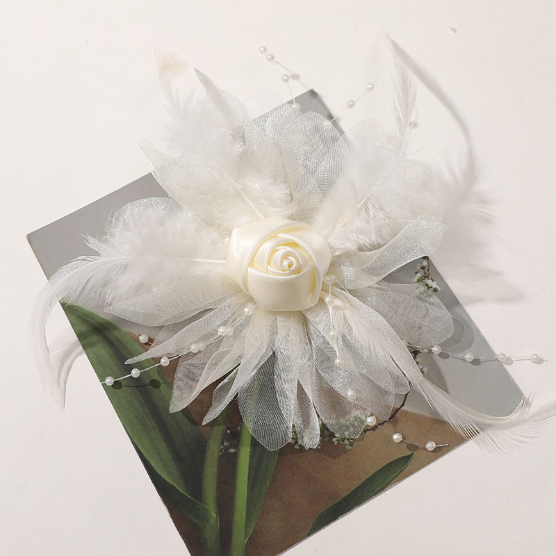 優しい風仙気羽毛網糸布芸バラdiy手作りヘアピン飾りアクセサリー卸売り