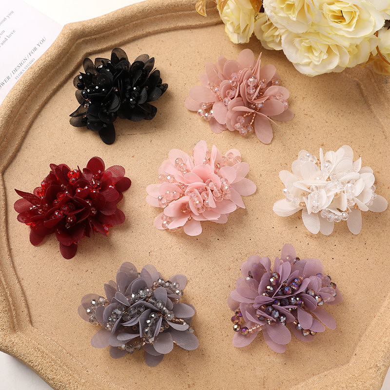優しい気質シルクガーゼクリスタルビーズ軽いガーゼフラワークラスター DIY 靴フラワーブローチサイドクリップヘッドドレス衣類フラワーアクセサリー