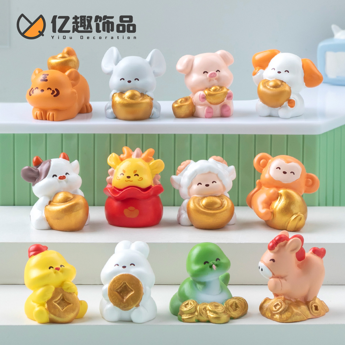 可爱招财十二生肖系列公仔 萌粒diy装饰品盲袋配件车载桌面小摆件