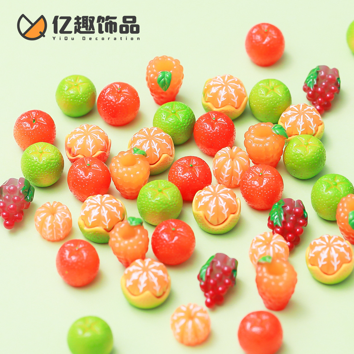 立体diyキーホルダーのアクセサリーはオレンジのみかんの果物の小さい景観のミニの置物の卸売りをシミュレーションします。