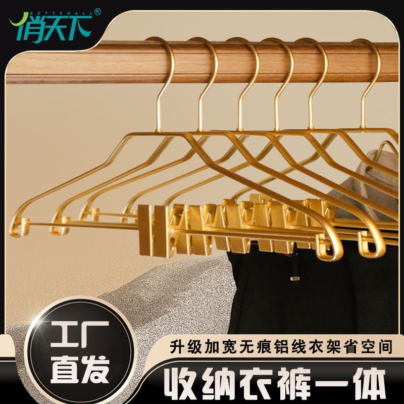 アルミ合金ハンガークリップ付き家庭用無痕滑り止めズボンハンガーセット一体拡幅アルミハンガー
