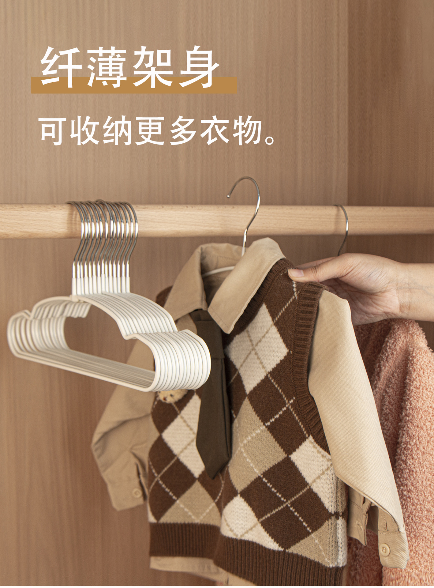 全アルミニウム合金ハンガーを厚くして、無傷で太くして、高級家庭用ハンガーをアップグレードして、贅沢で滑り止めの服を支えます。