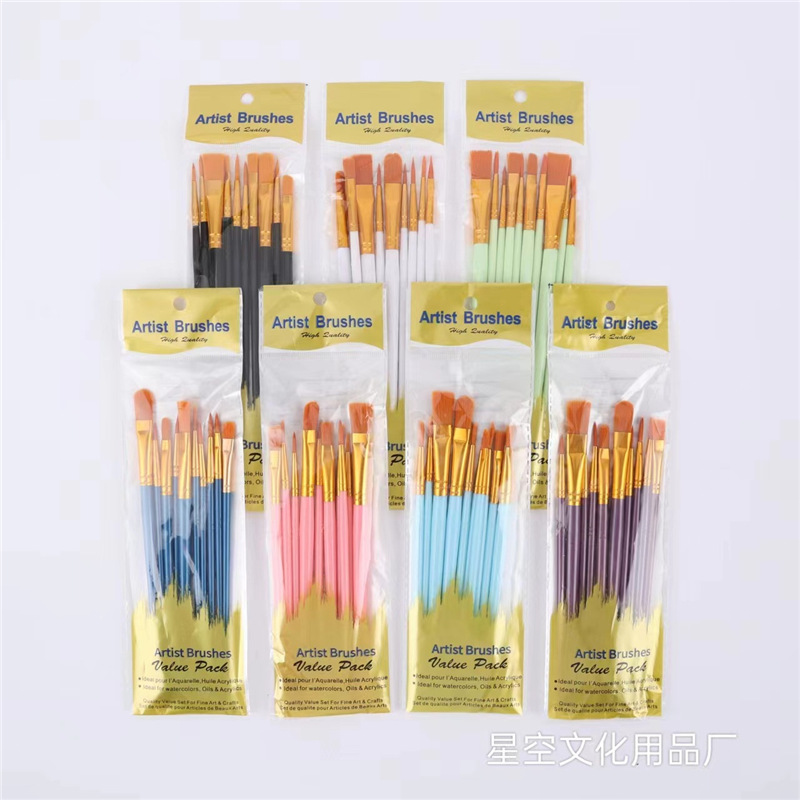 越境10本のプラスチック棒ナイロン毛絵筆セット美術生画水彩水粉油絵筆絵筆