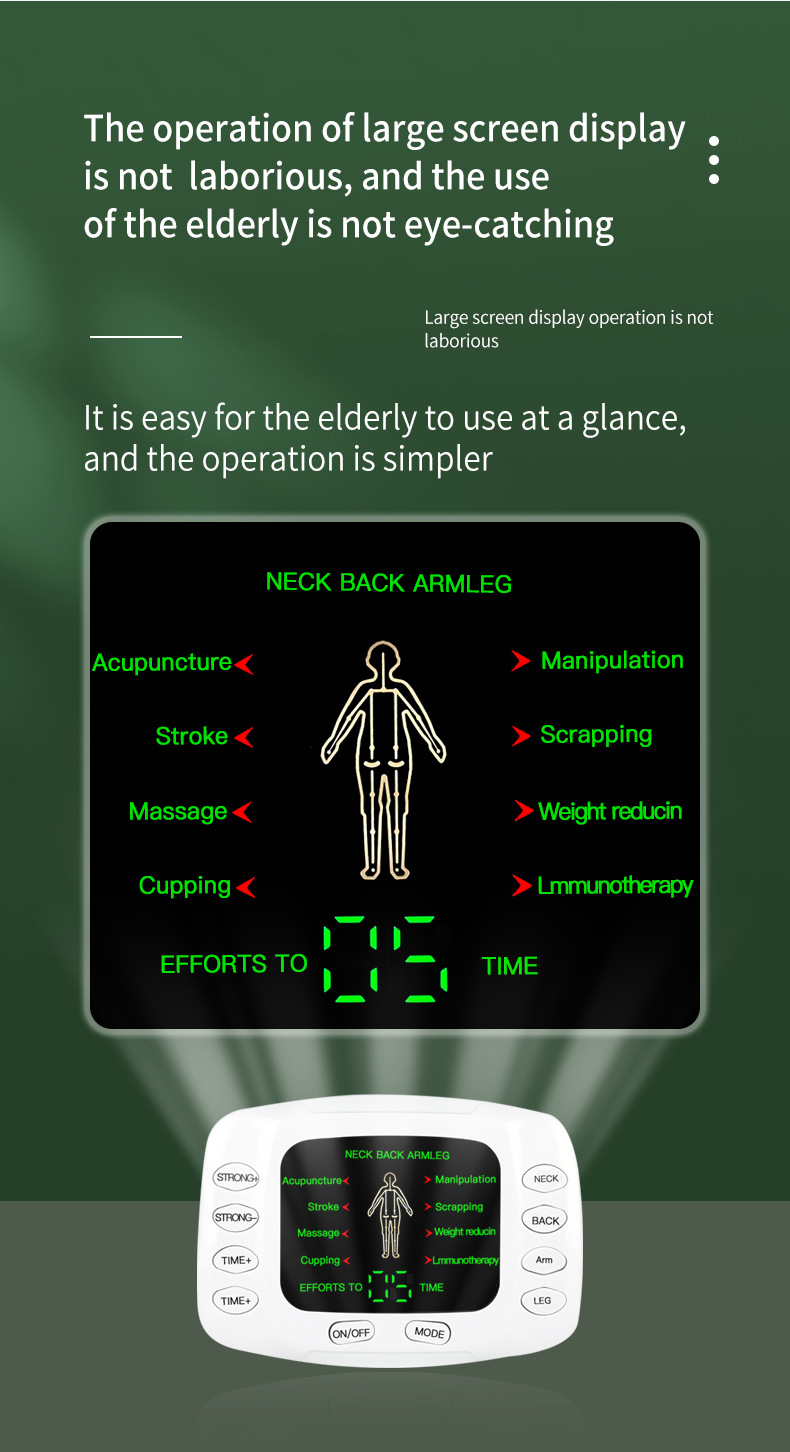 メーカー卸売多機能全身スマートデジタルパルスマッサージ器、中国語と英語対応、越境で人気の経絡理学療法器