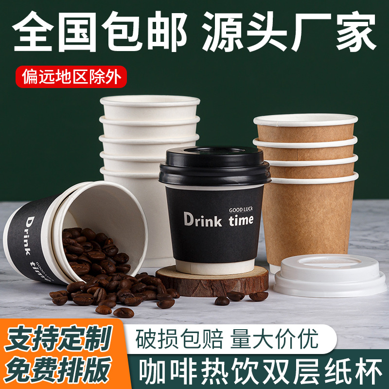 使い捨てコーヒーカップ蓋付き紙コップ二重紙コップ高颜値断熱厚手パーマ防止ミルクティーコーヒーカップ