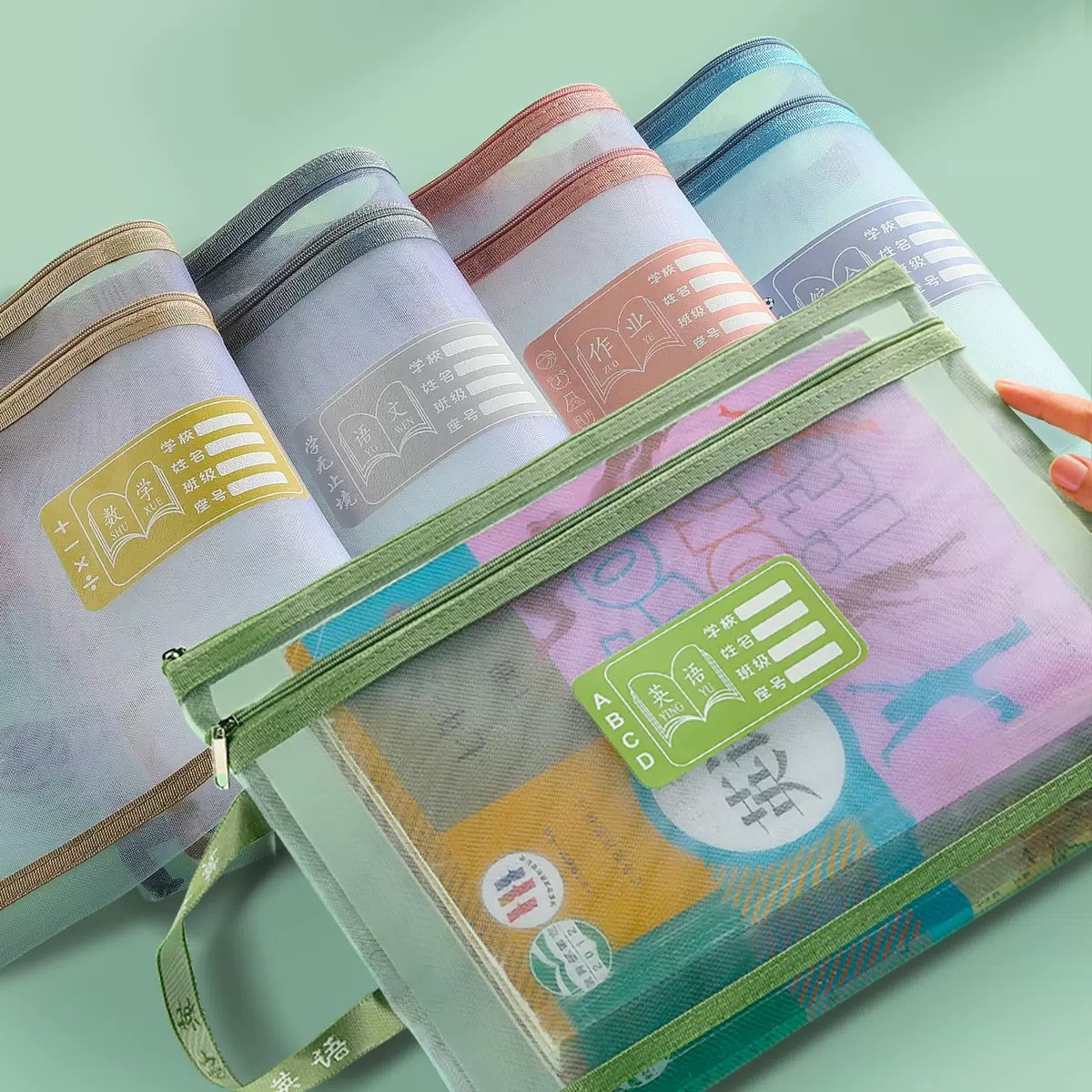 科目分类收纳袋小学生手提透明网纱加厚大容量A4试卷课本资料袋