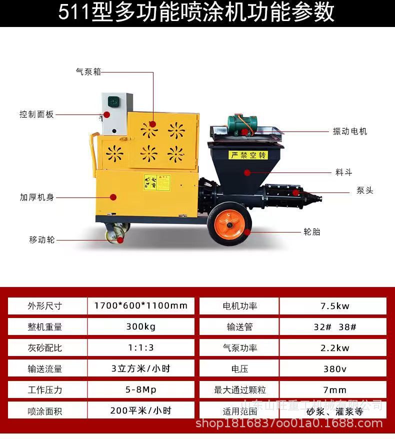 セメントモルタル塗装機小型ドアスリット注入グラウト機パテ粉壁機粗砂ディーゼルブラシ噴霧機