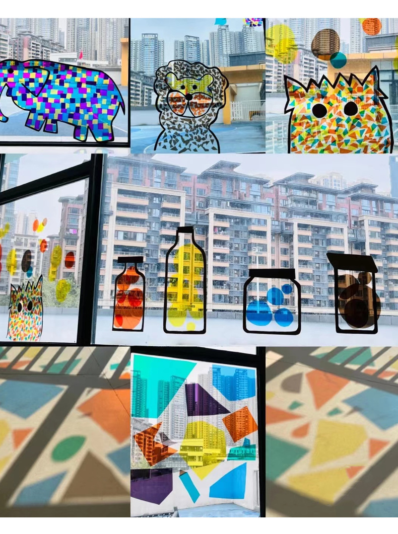 DIY アートペーパー幼稚園児の色変化認知手作り透明色セロハン光と影