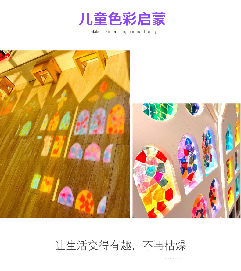 ステンドグラス手作り幼稚園透明透光ハードシート児童七彩プラスチック紙a3 4翼色紙