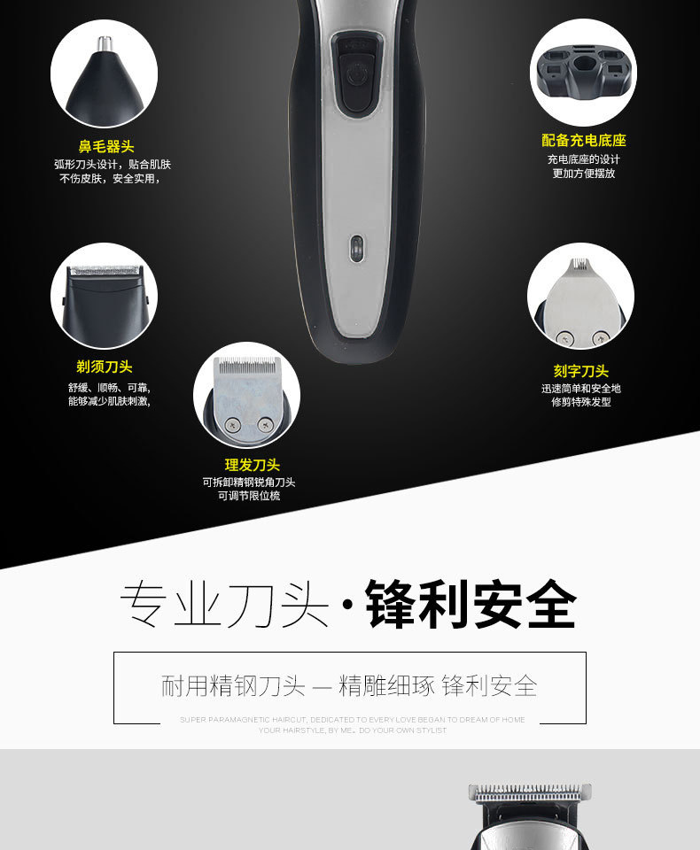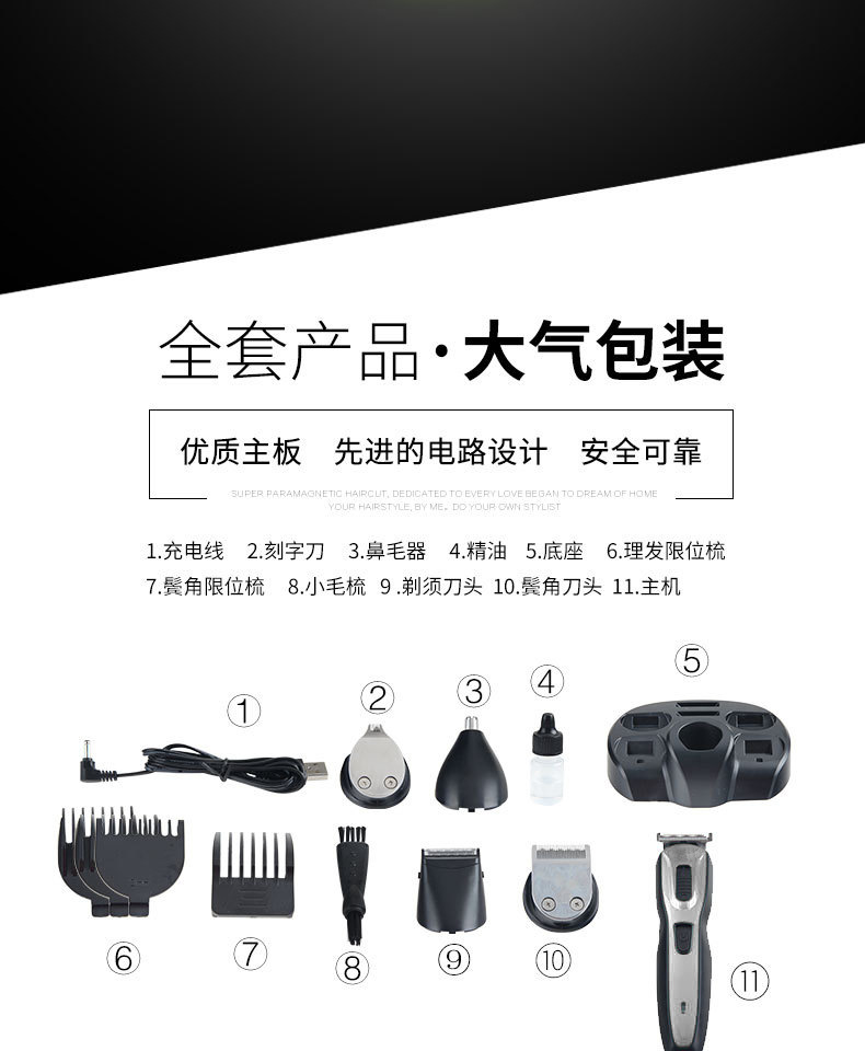 クロスボーダー五合一多機能理髪器セット充電式往復式髭剃り電気鼻毛剪定器