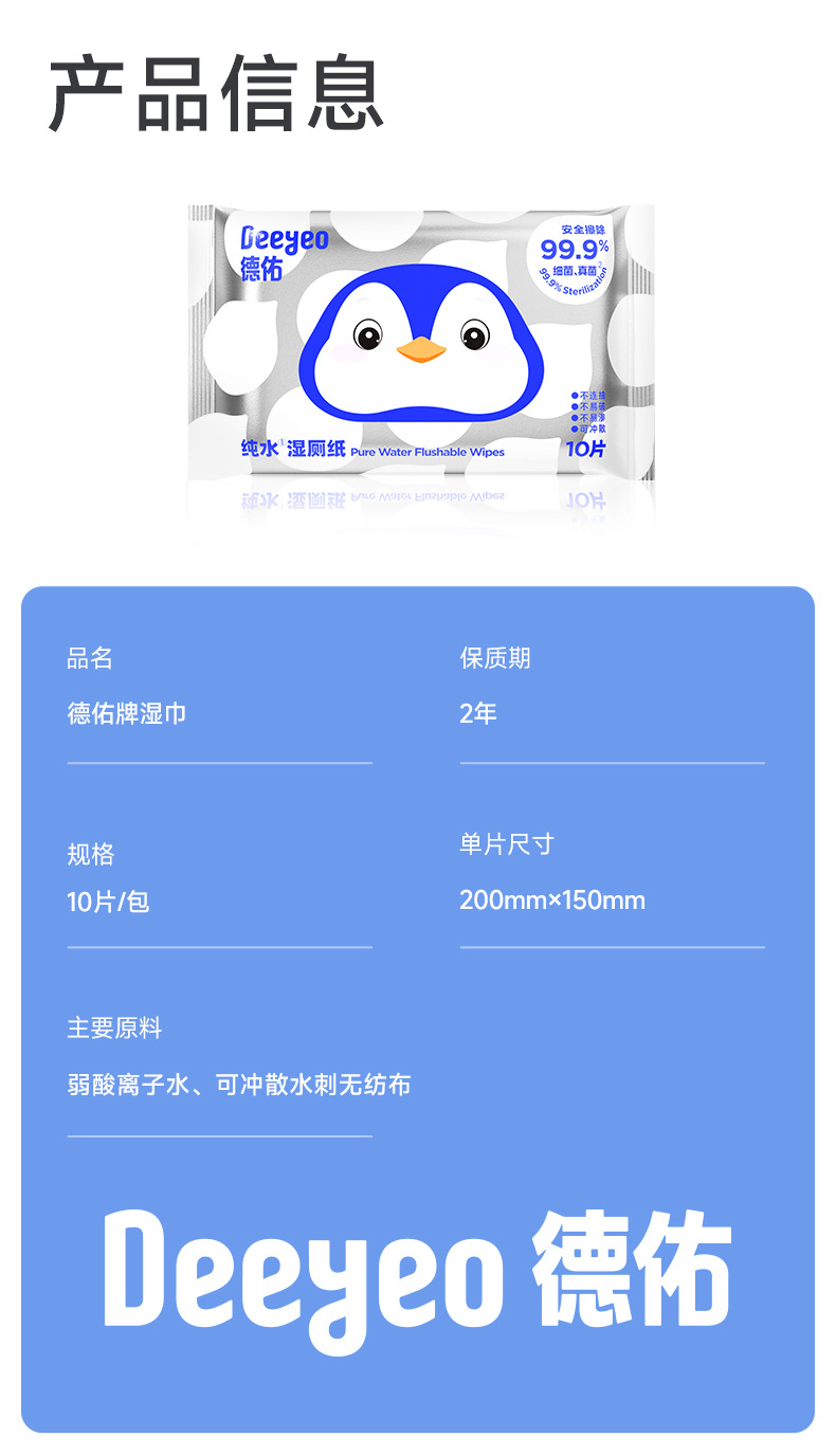 徳佑純水湿トイレットペーパー10パック男性女性用トイレ紙拭きティッシュ携帯小包