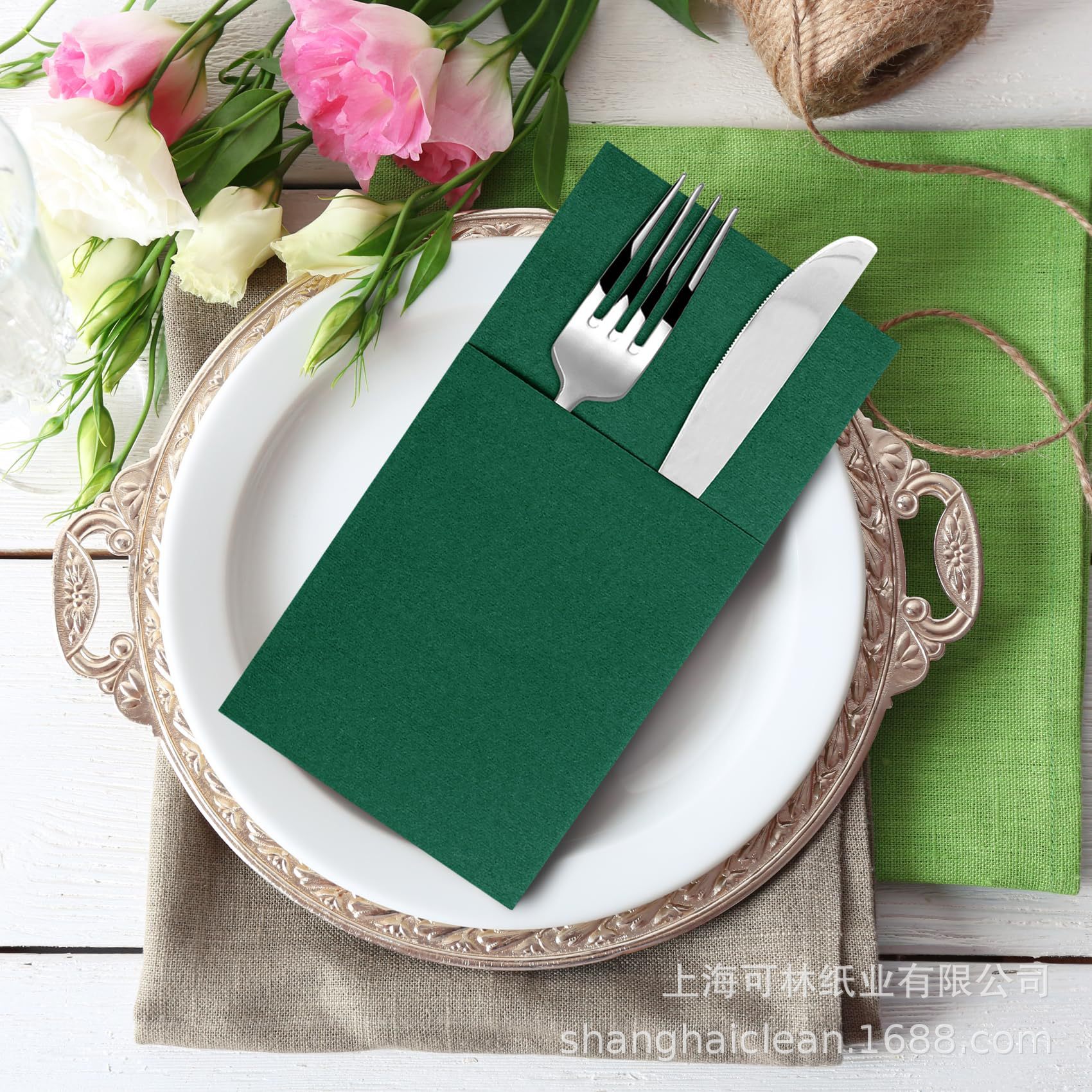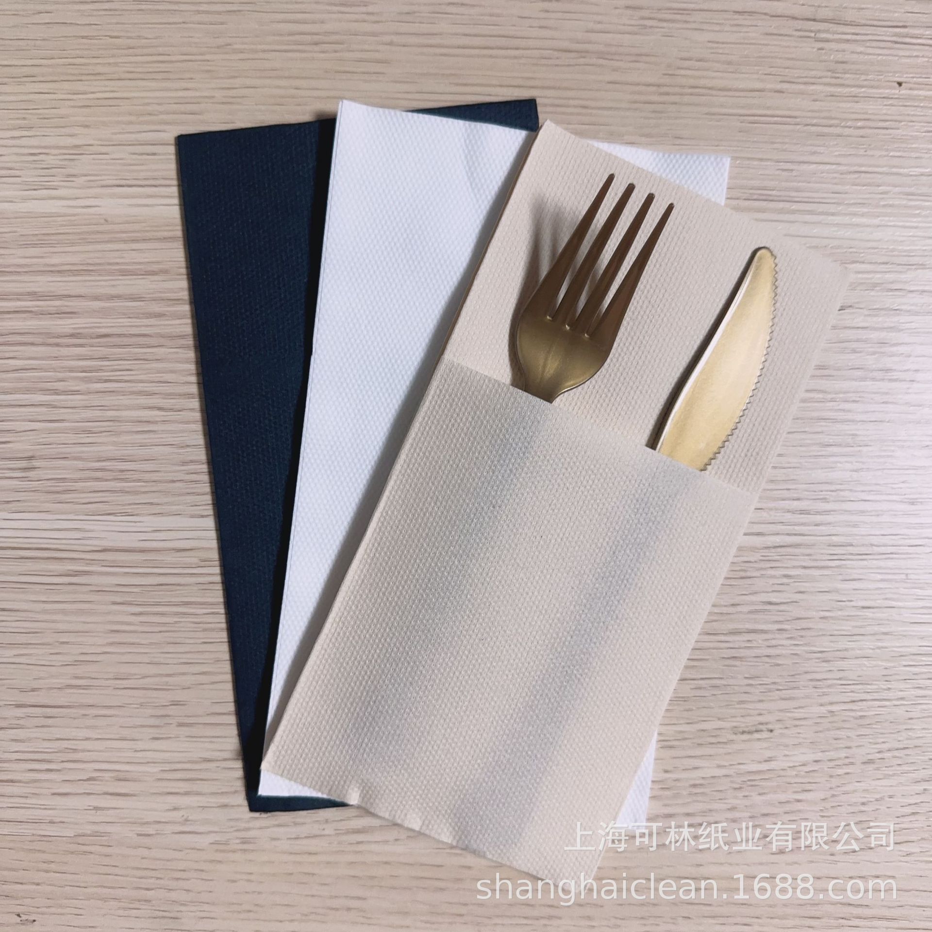 亚马逊热销一次性白色无尘西餐巾西餐厅折叠刀叉包加厚无尘纸餐巾