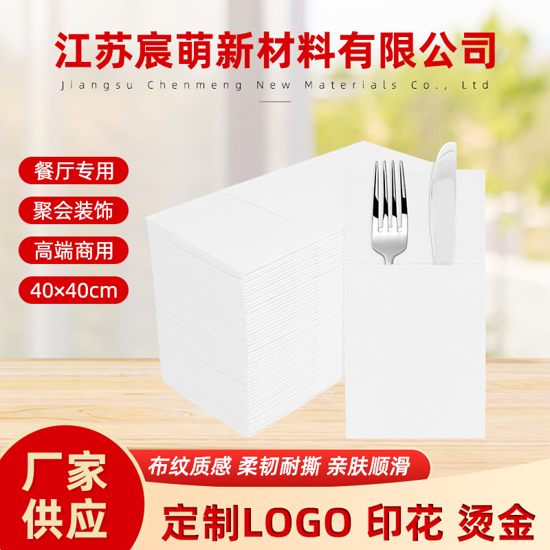 クロスボーダー使い捨て白防塵ナプキンカトラリー折りたたみパーティー宴会カトラリーバッグ折りたたみナプキンプリントロゴ