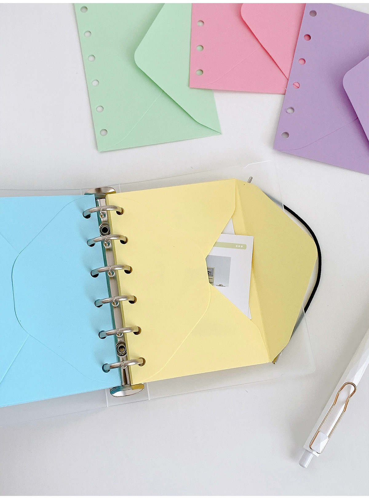 詰め可能A7バインダーシェル手帳裏の収納カラー封筒素材シール付箋分類収納袋紙袋