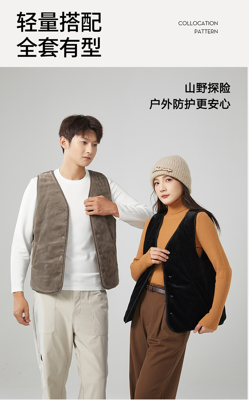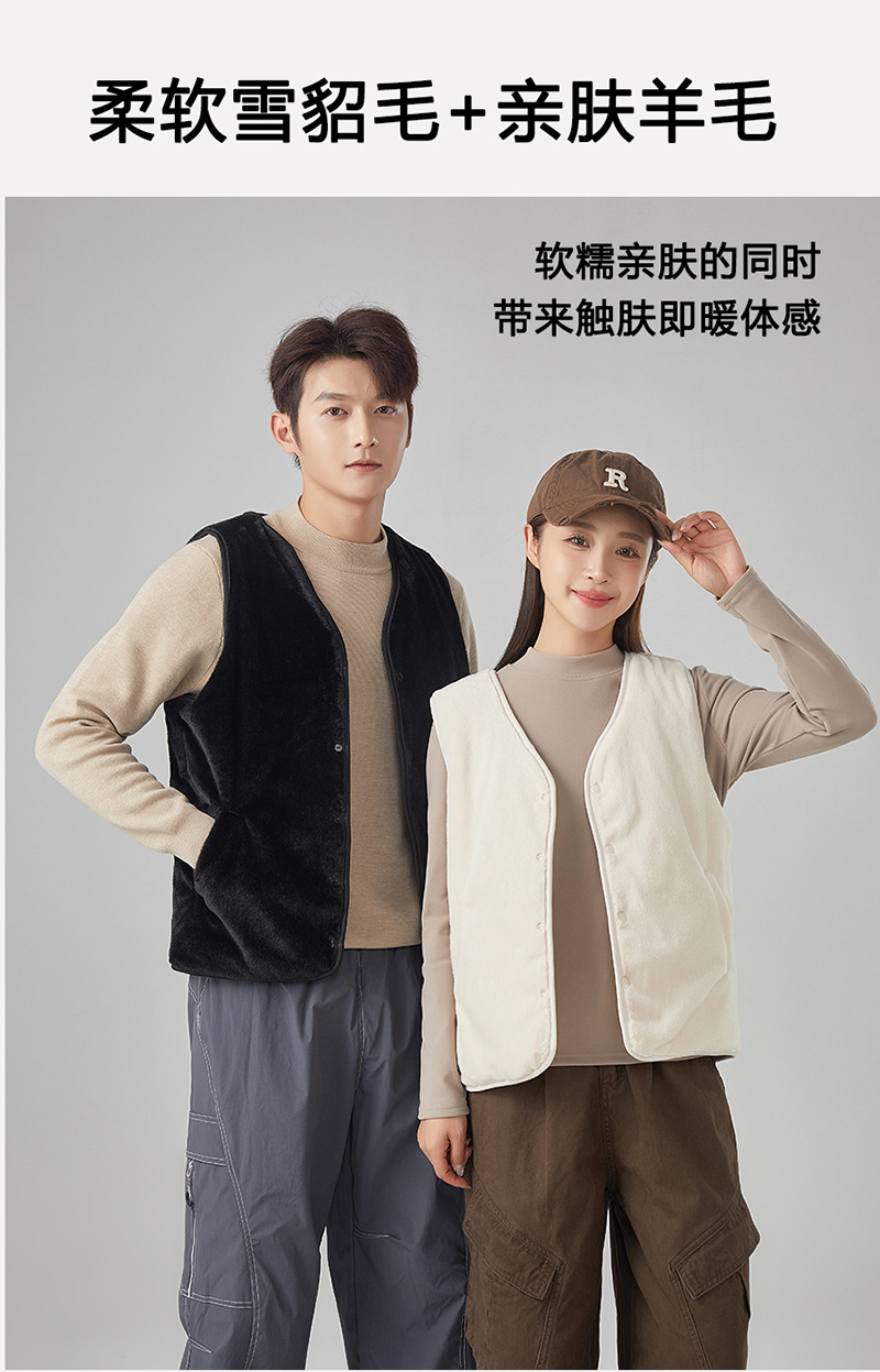 厂家直销【羊毛可拆卸衣领】男女同款秋冬季保暖加绒羊毛马甲5701