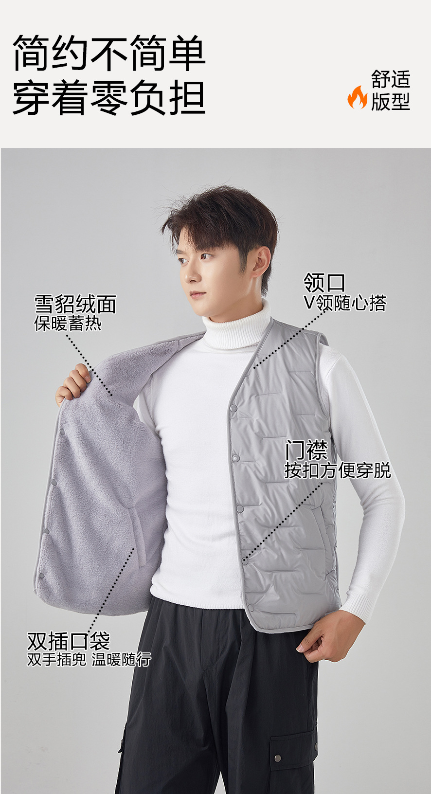 【气绒羊毛马甲】男女同款保暖马夹秋冬蓄热打底背心内胆外穿坎肩