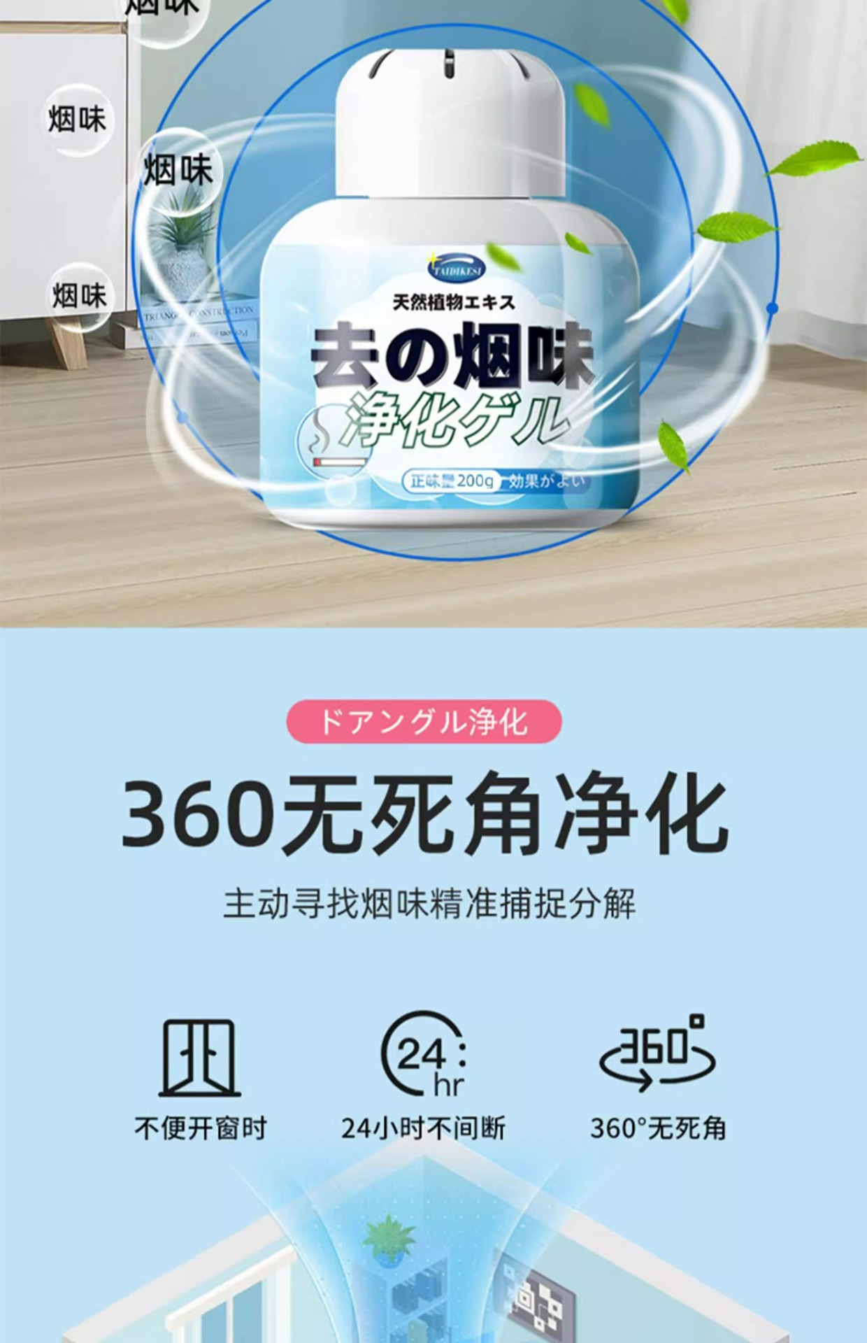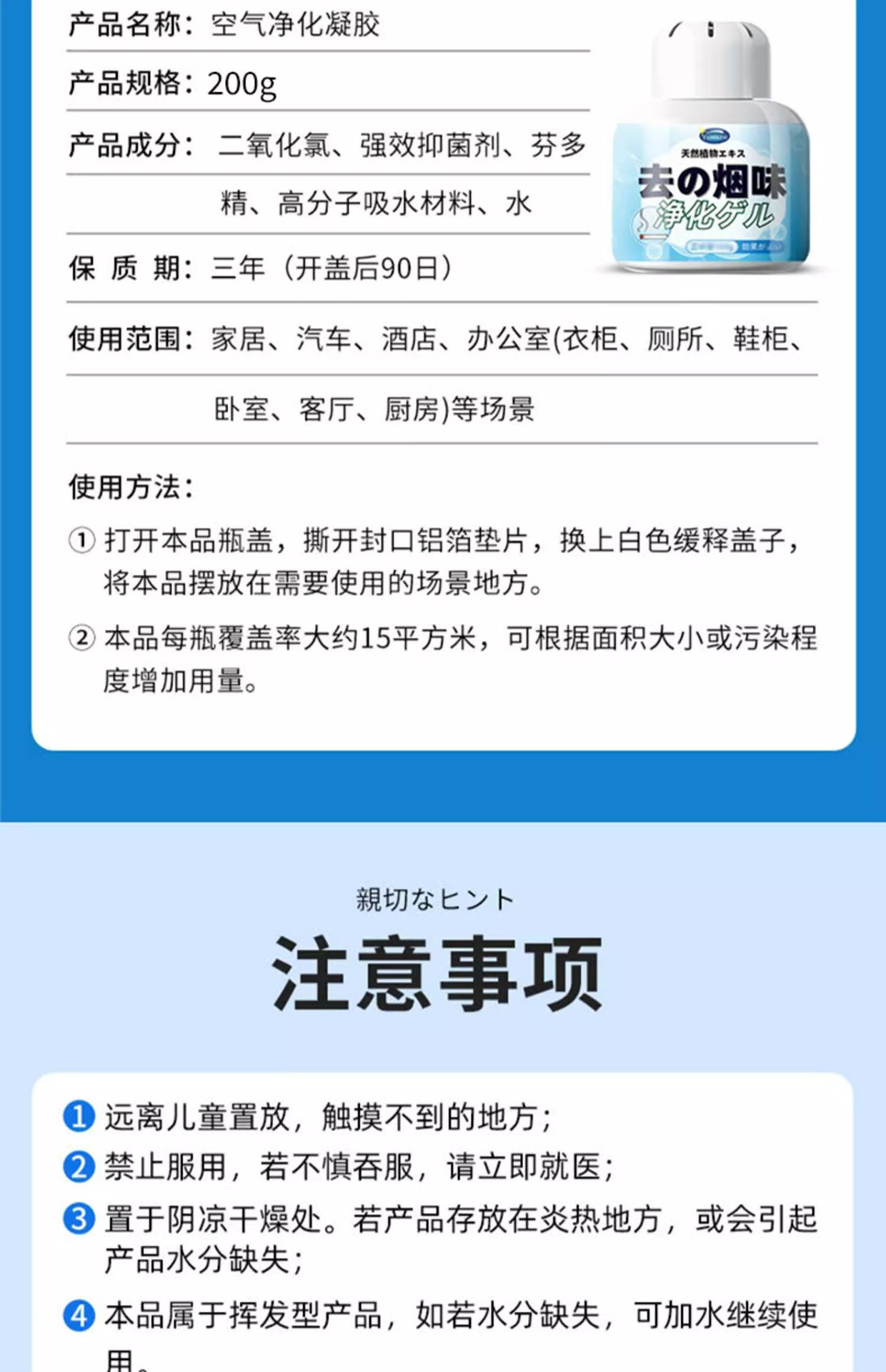 净烟魔盒除烟味神器室内房间分解二手烟衣服空气净化香薰家用凝胶