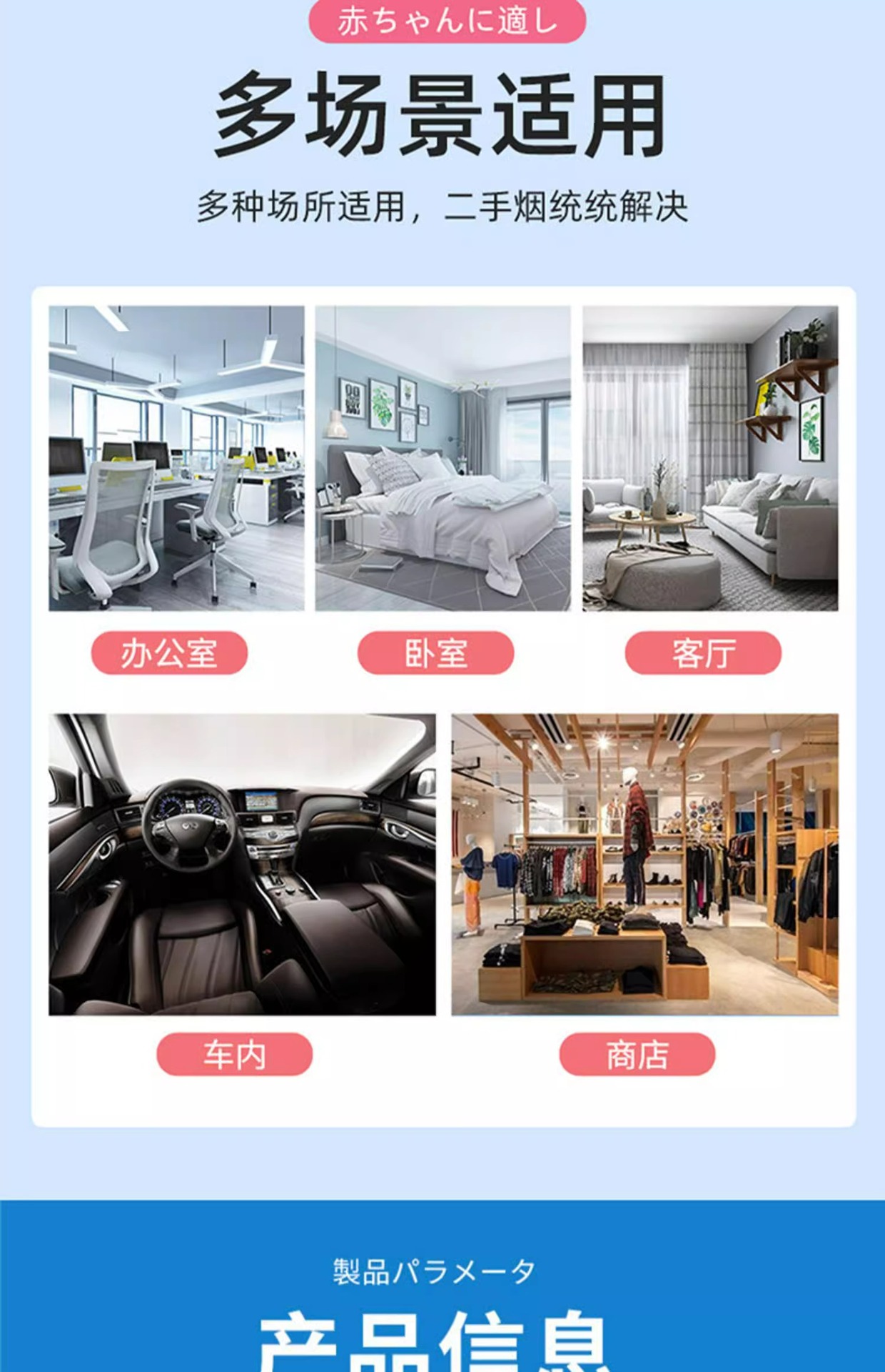 日本除烟味神器室内房间净化祛二手烟汽车内异味去除烟味净烟魔盒