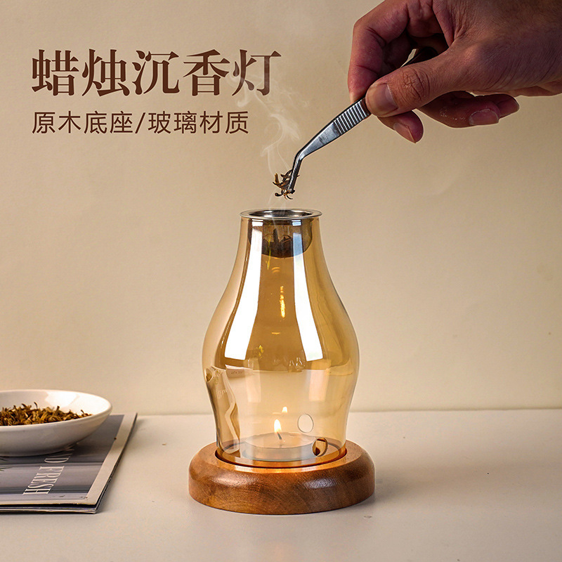 沉香熏香炉玻璃熏香炉家用檀天然香料香熏复古隔火香炉蜡烛熏香灯