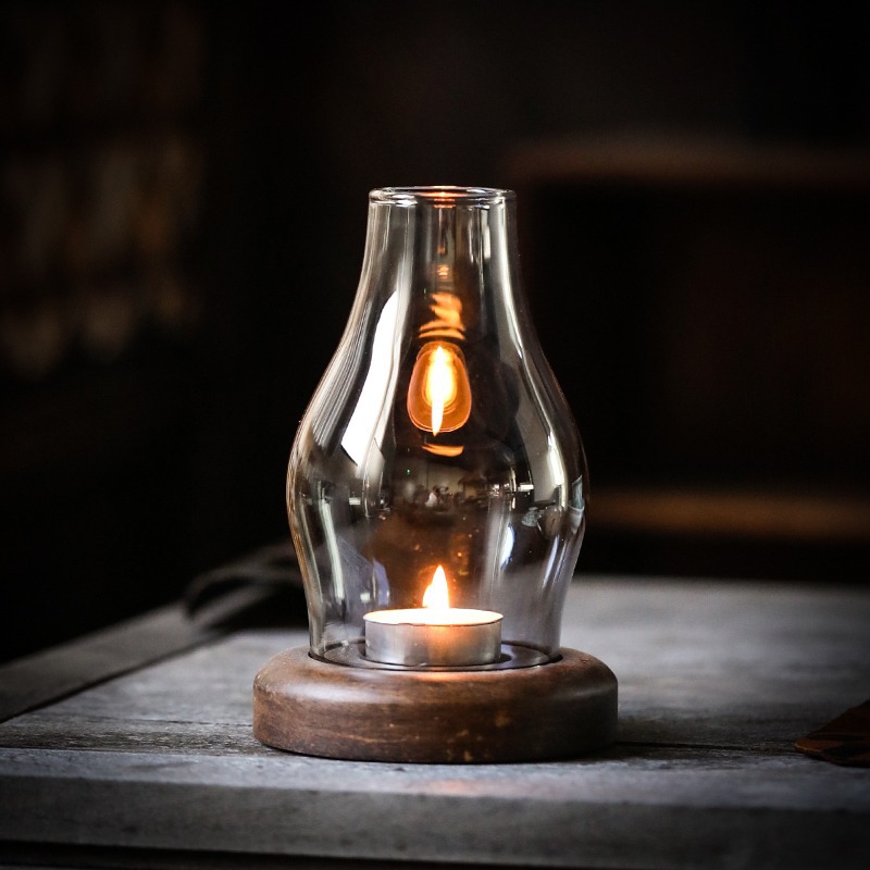 ろうそく薫香灯復古隔火香薫炉中国式復古薫香ガラス炉ろうそく台防風ガラスランプカバー