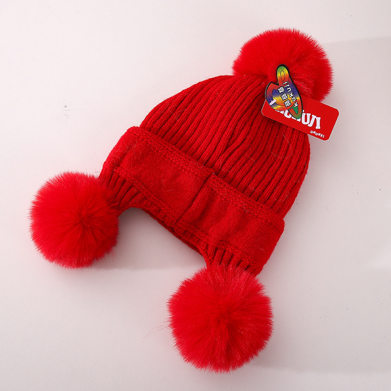 アニメ男女赤ちゃん毛糸帽かわいい毛玉ニット帽男の子冬新型保温子供用耳保護帽子