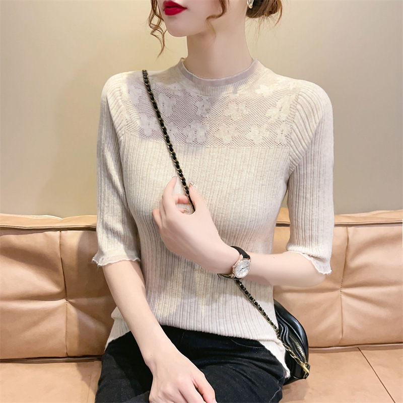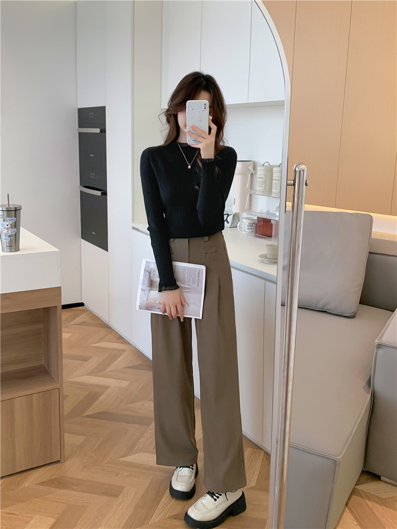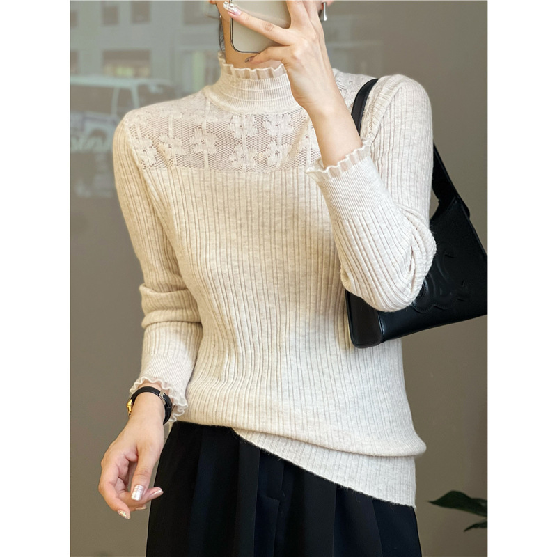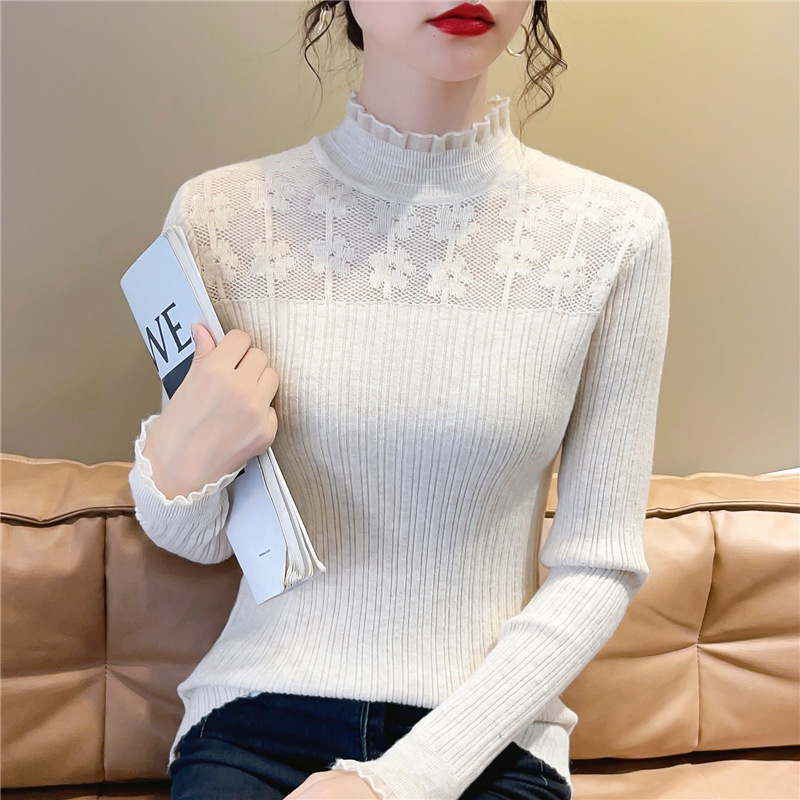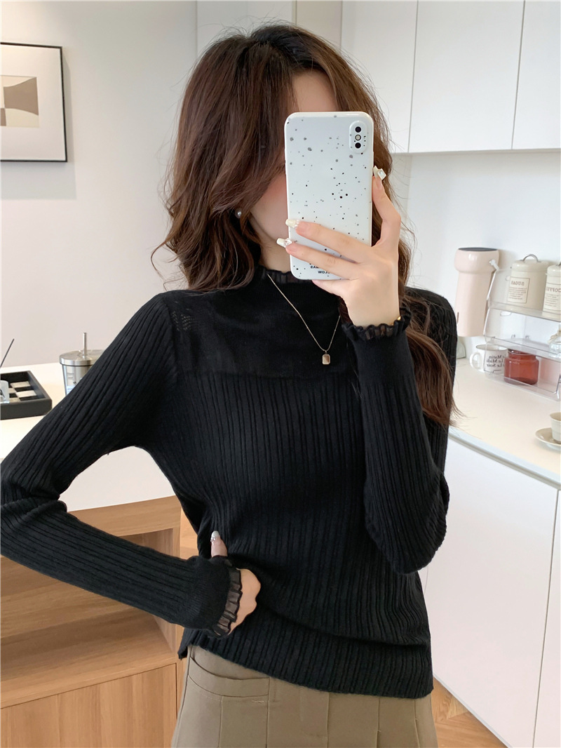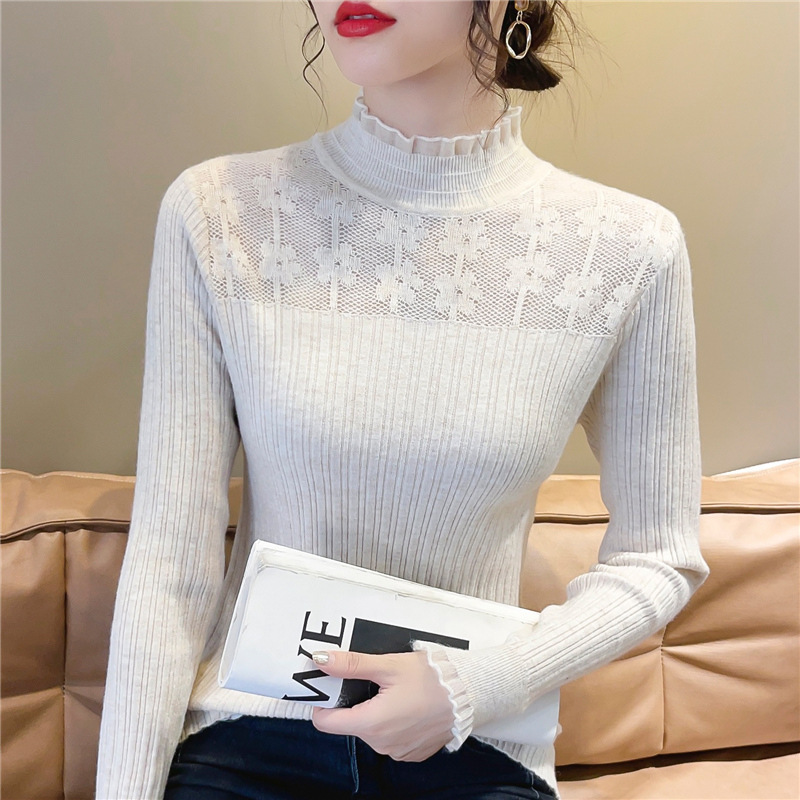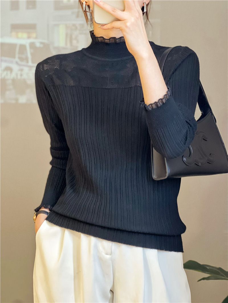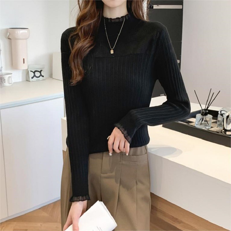 2024秋冬の新型の半高襟の底のシャツの純色の修身ネットのシャツのデザイン感の上着の中にニットのセーターを掛けます。