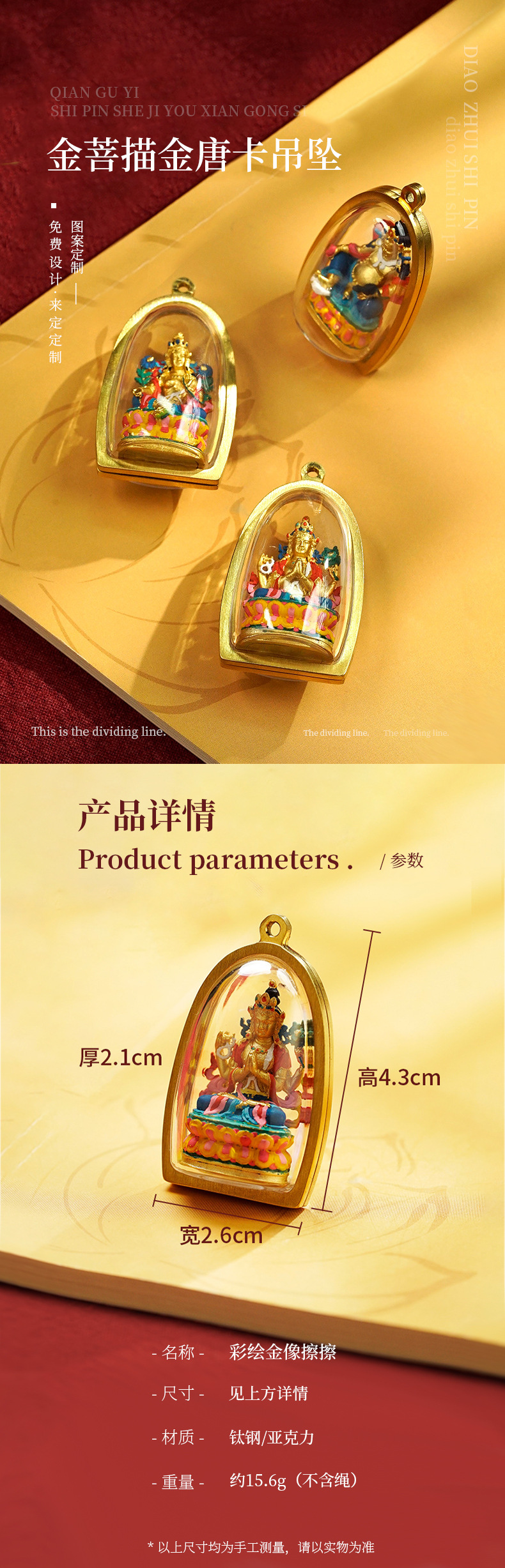 5 支持免费定图设计服务 客户可提供指定佛像 生肖图案或文字 我们按需定制专属金像擦擦吊坠 满足个性化及批量文创需求