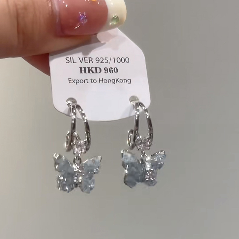 厂家直销S925水晶透明彩色蝴蝶耳钉甜美小清新轻奢简约耳环女批发
