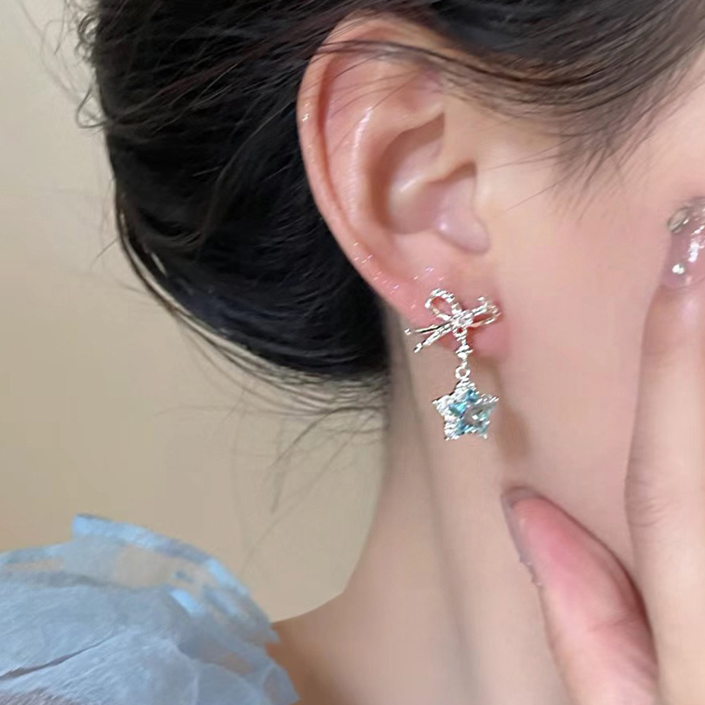 ライトラグジュアリーファッションコールドスタイルスターリボンイヤリングニッチデザインハイエンド五芒星小さくて絶妙なイヤリング