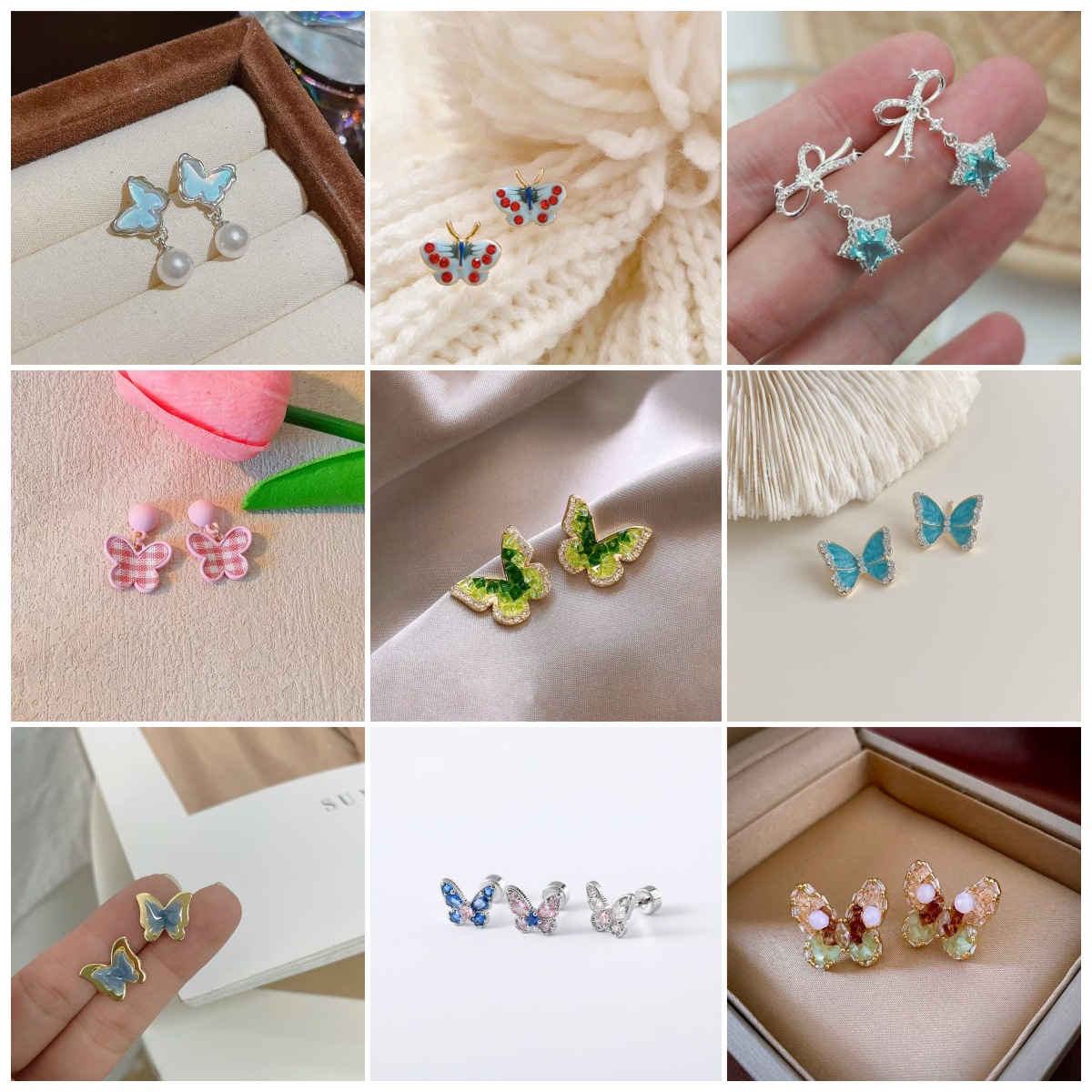 甜美少女心小清新水晶云朵蝴蝶流苏耳环韩版耳钉轻奢小众森系耳饰