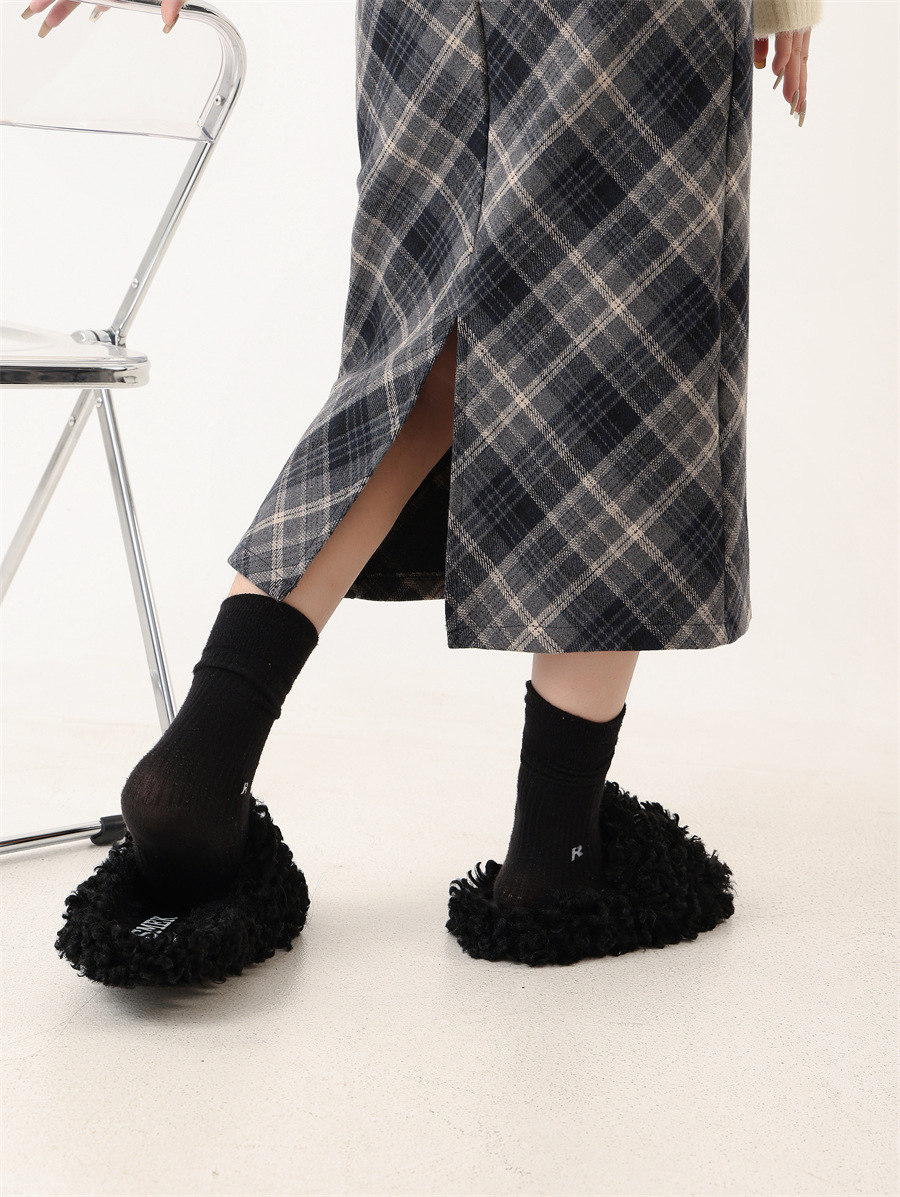 香港風は色の格子縞の毛にぶつかります。半身のスカートの女性の大きいサイズは太っています。