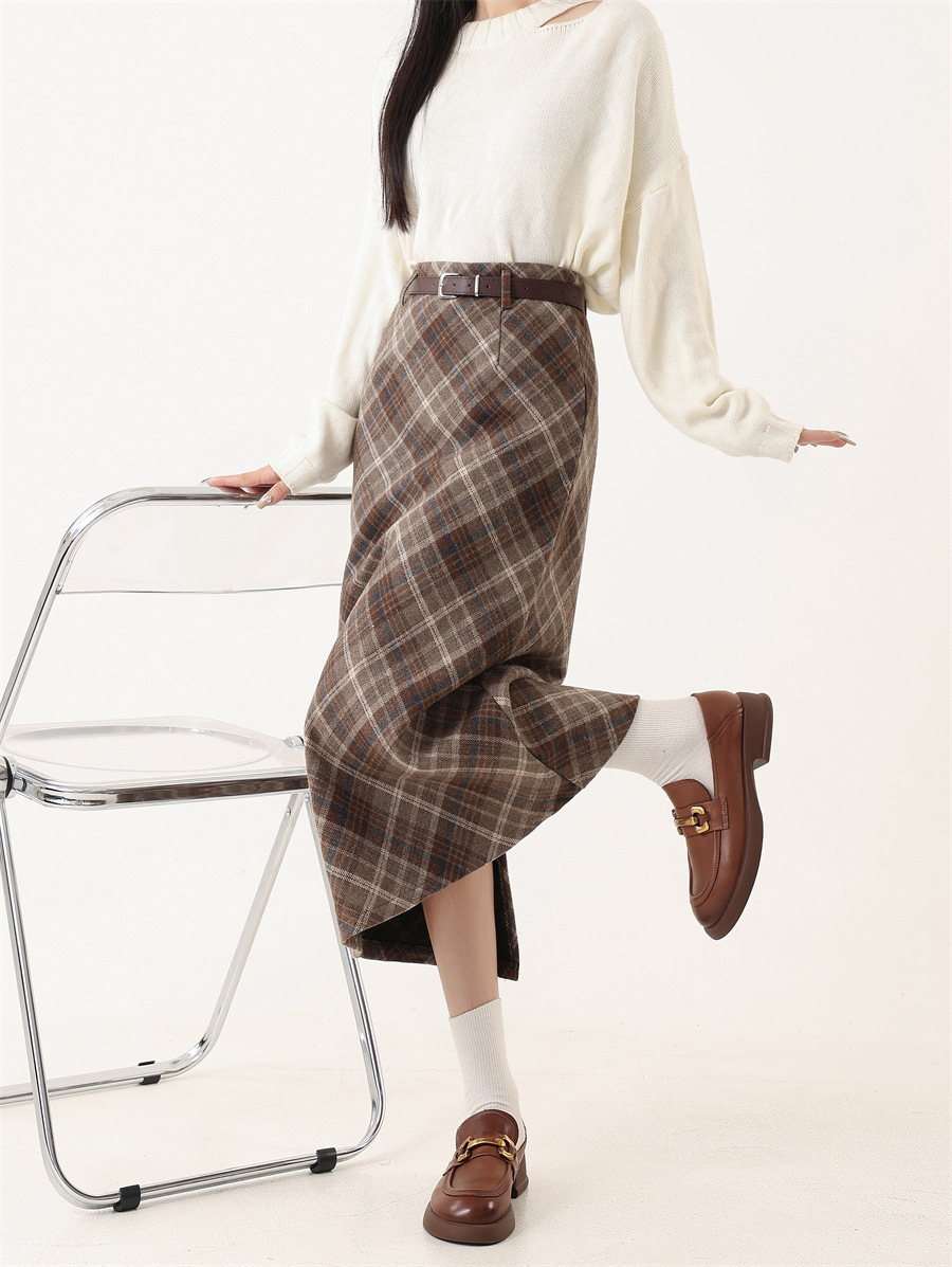 大きいサイズの太ったmmの毛は格子の半身のスカートの秋の小さい背の中の長いタイプのまっすぐな筒が開いています。