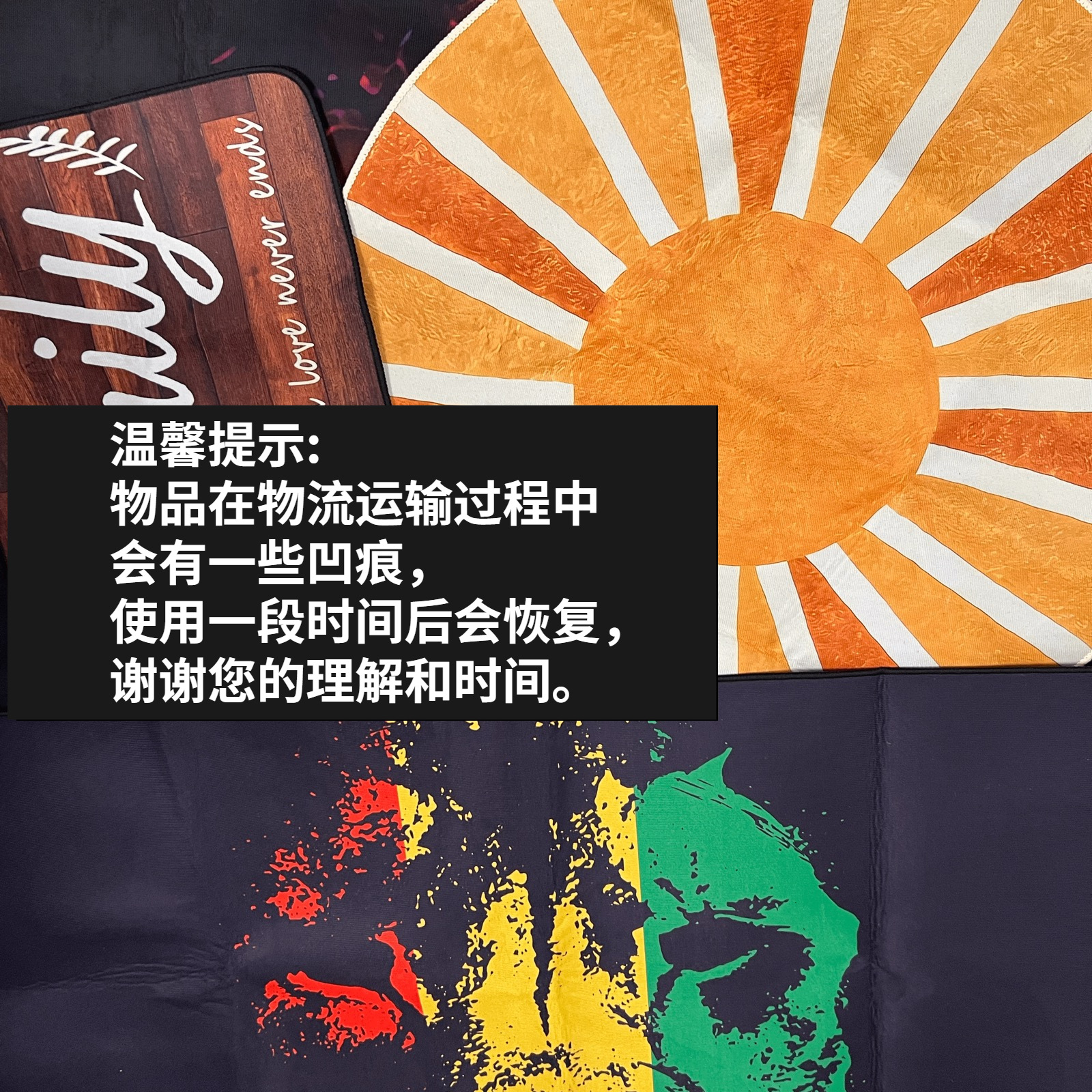 • 注意:当您收到地毯时,可能会有一些折痕。这是因为出于运输目的,地毯将折叠运输。您可以将其放置3-5小时,然后折痕就会消失。或者你可以熨烫折痕并在折痕上压重物。您将拥有一张完美的地毯。你一定会喜欢它的。