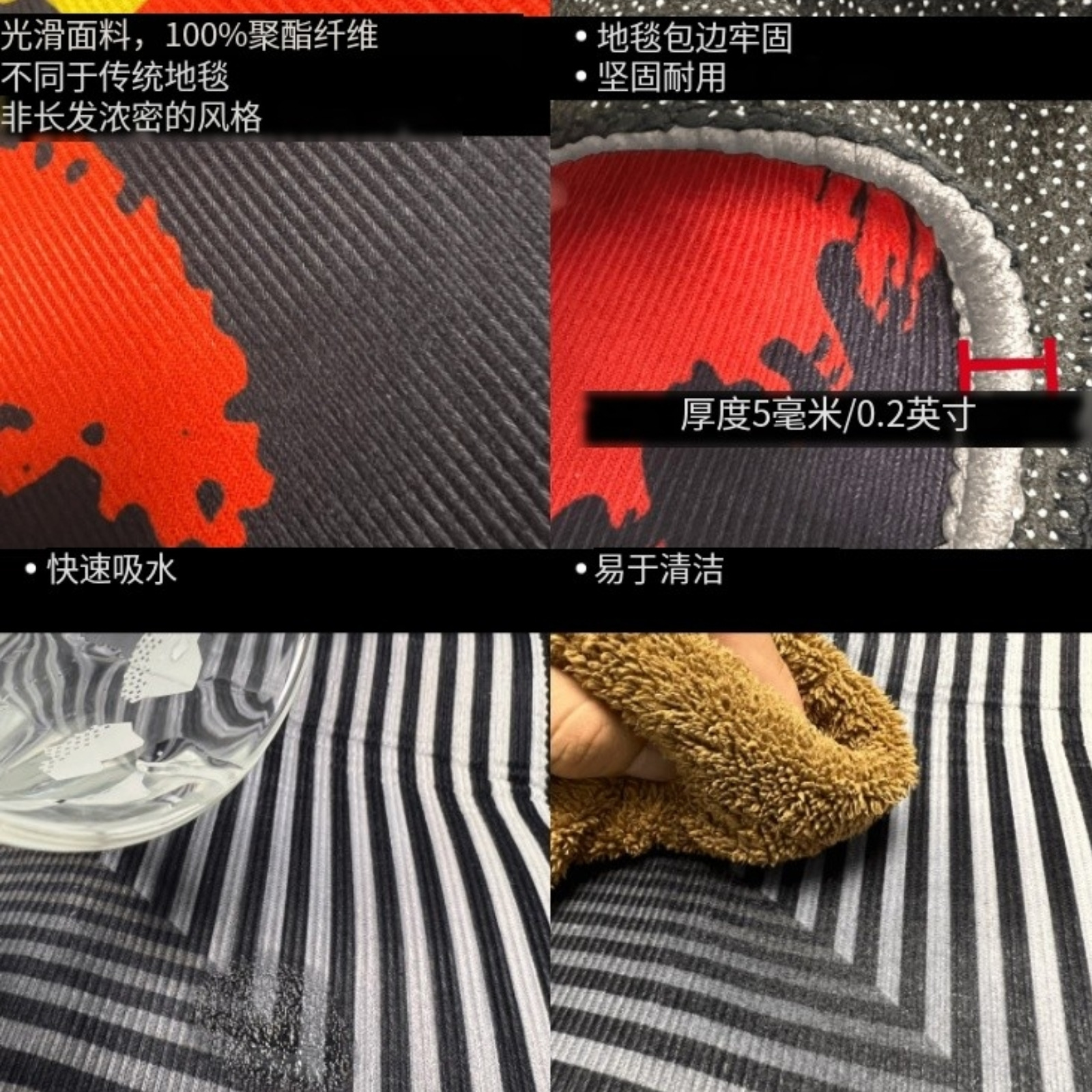 • 易于护理:地毯采用高科技印刷技术印刷,不易褪色。我们的卧室客厅地板地毯非常容易清洁。可以定期用刷子或吸尘器清洁;也可以在洗衣机中清洗,或者只需添加一些温和的清洁剂,然后将地毯放在通风的地方晾干。请不要将其暴露在阳光下。请不要漂白。