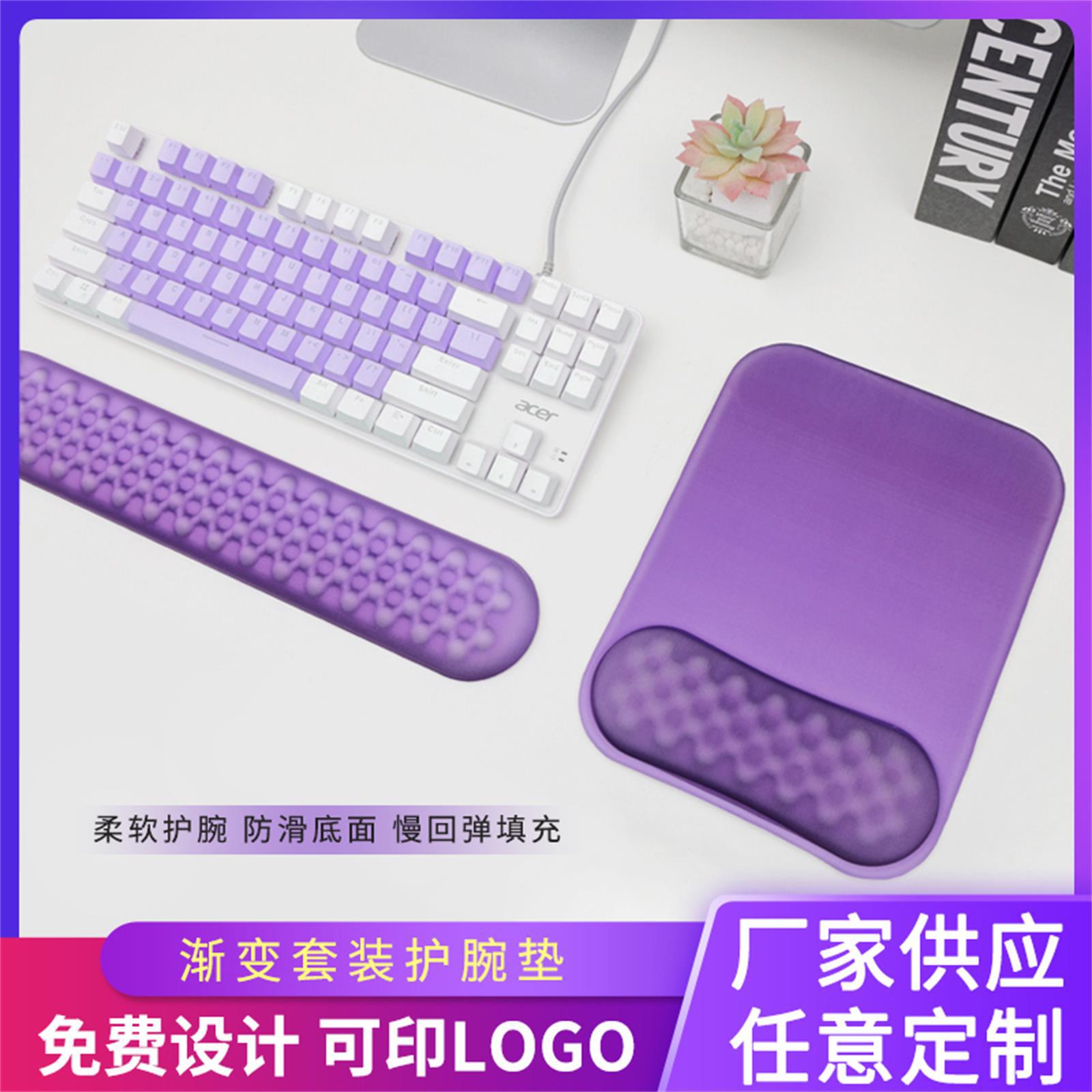クリエイティブなグラデーションカラー発泡綿キーボードハンドレストマウスパッドリストガードオフィスパームレスト3点セットデスクトップマット