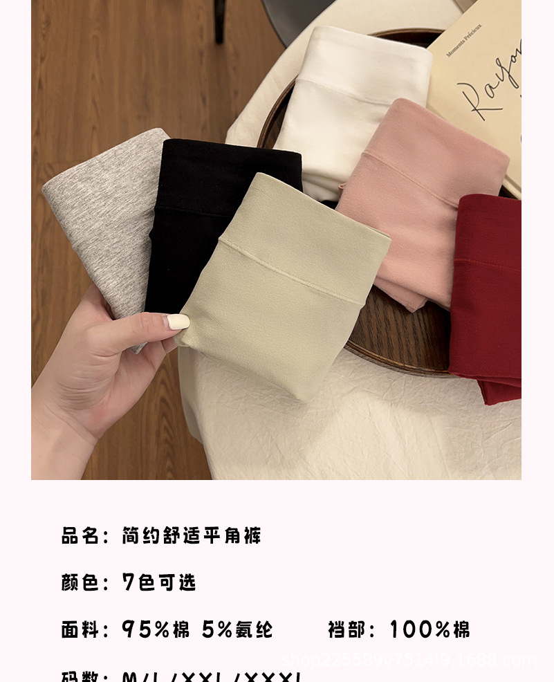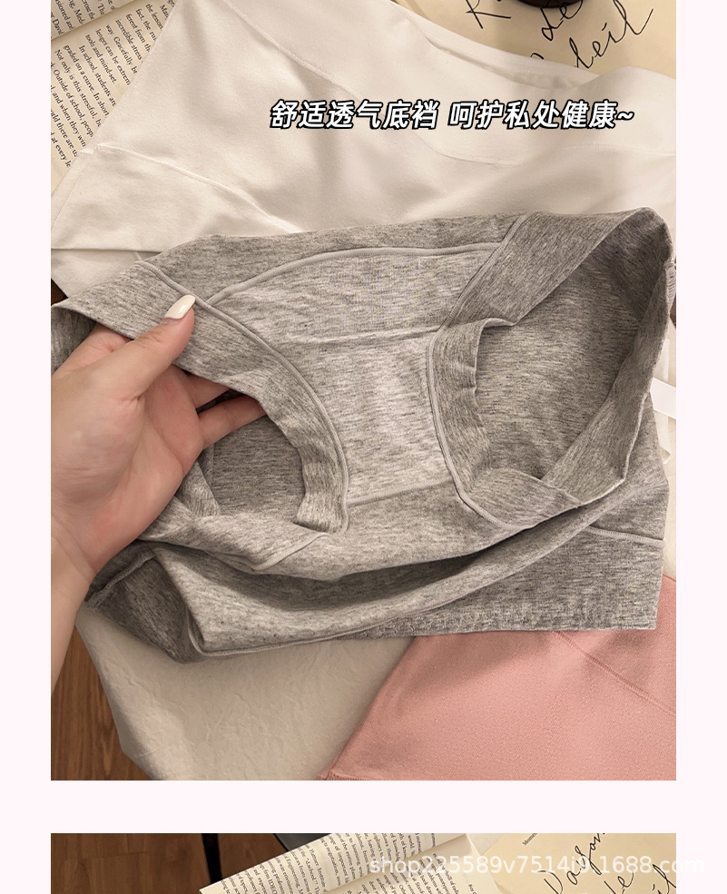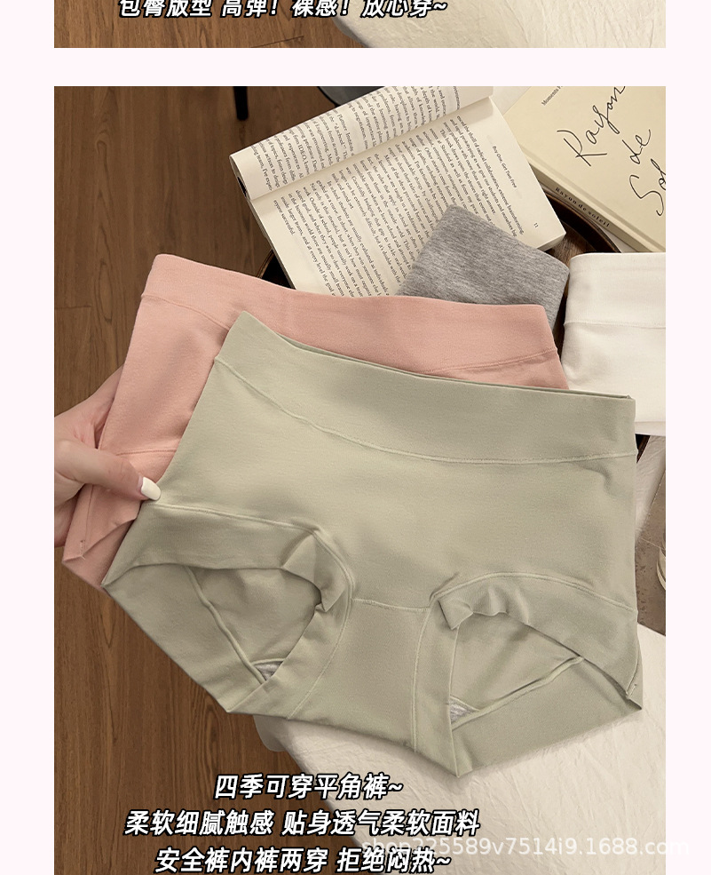 女士纯棉内裤10A加长档新款透气中腰提臀抗菌档无痕撞色女三角裤