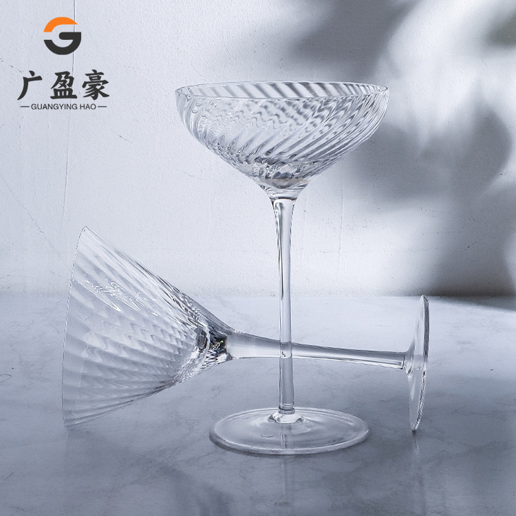 ヨーロッパの縦縞カクテルグラスクリスタルガラス家庭用ワイドリジッドハイアイスクリームカップバースペシャルバーテンダーカップ