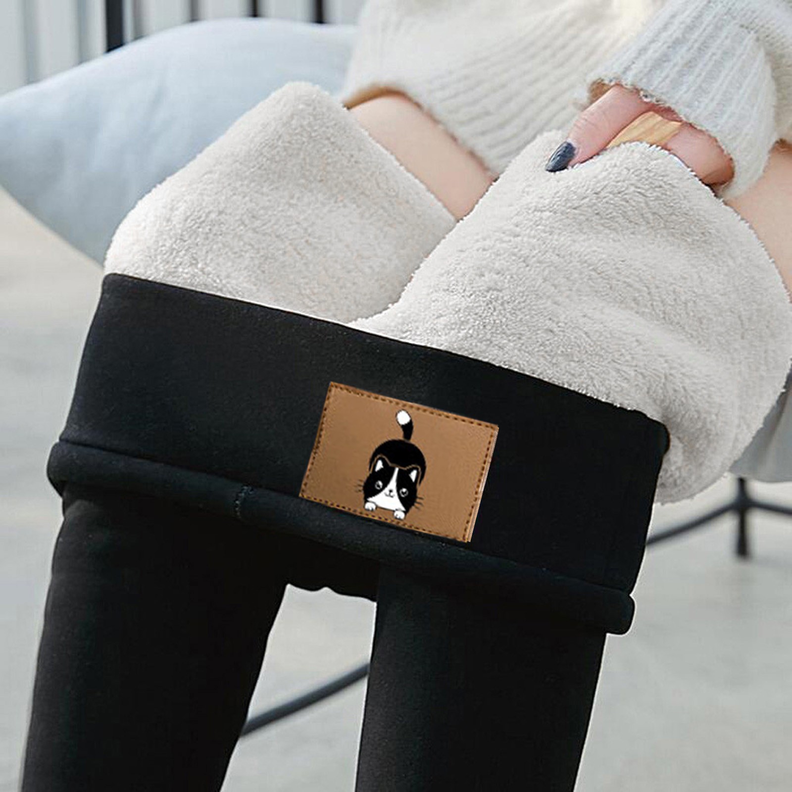 新しい秋冬ファッションカジュアル女性プリントアイコン弾力性女性ハイウエスト保温ズボン