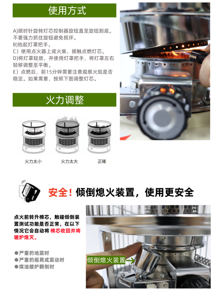 新型灯油ストーブは屋外キャンプを昇降できます。