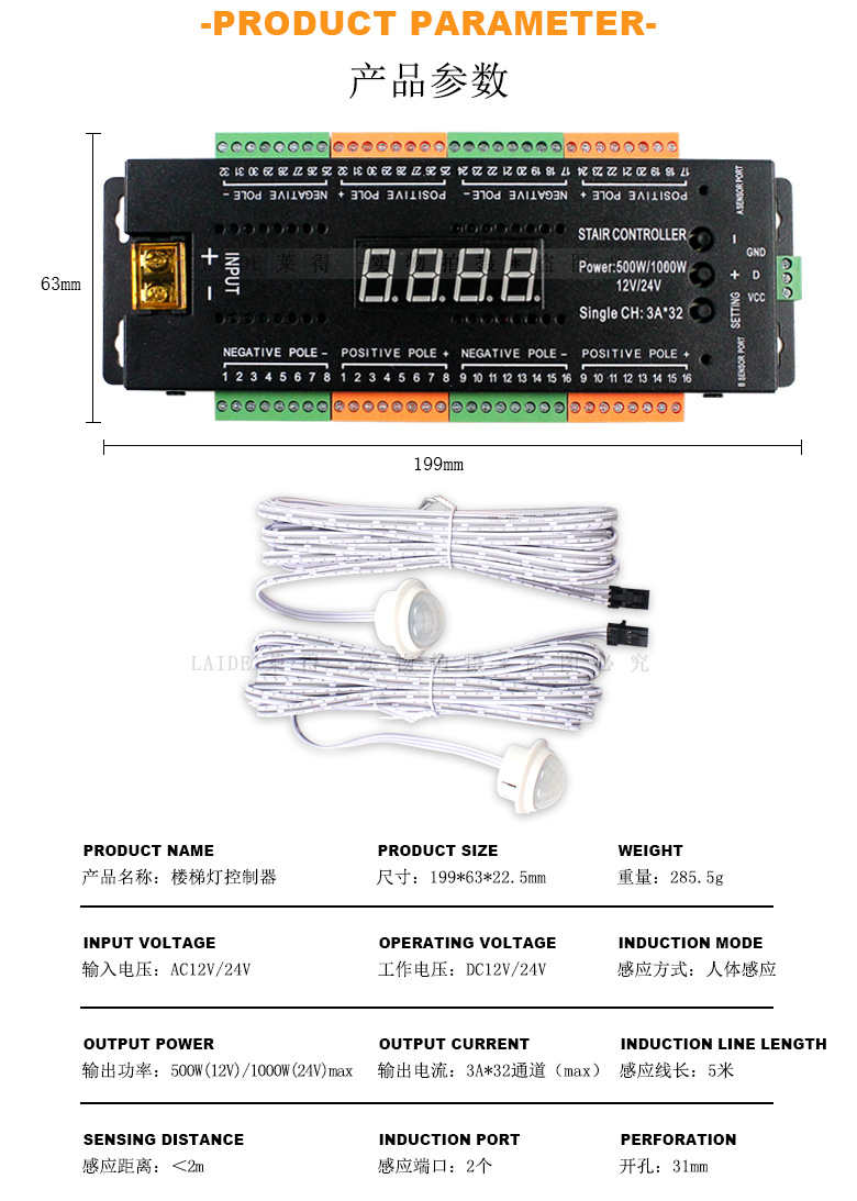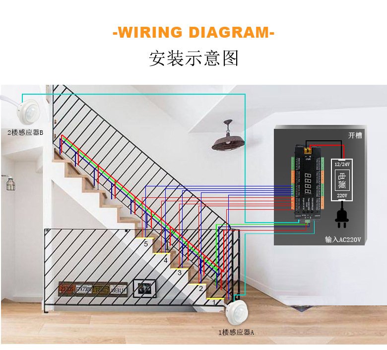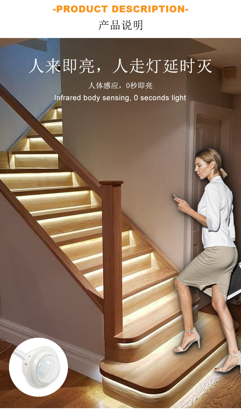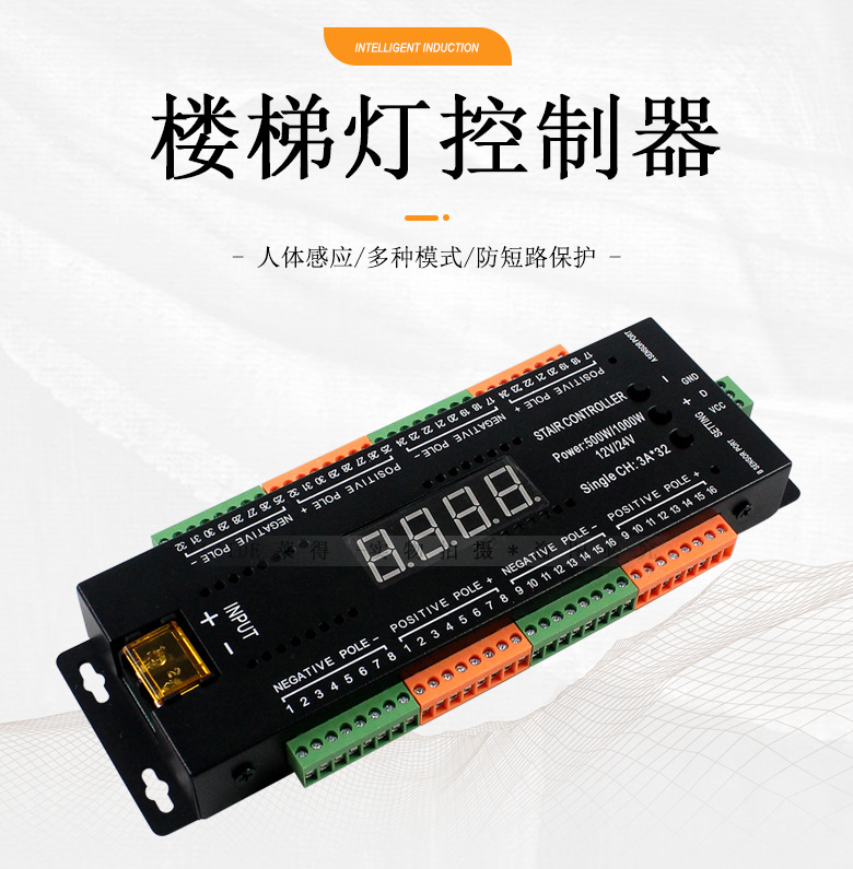 智能网红楼梯灯控制器12-24V楼梯灯台阶跑马踏步灯感应器