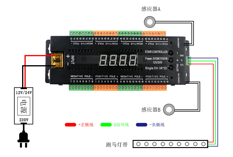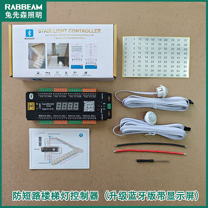 32路LED楼梯控制器升级蓝牙带显示屏12V24V踏步逐步流水感应灯