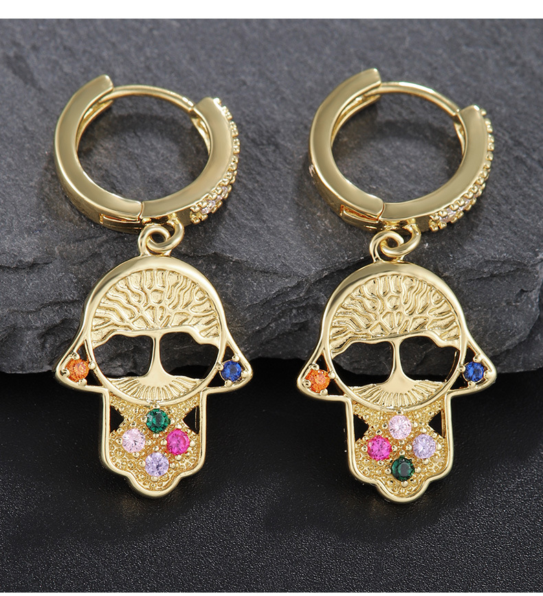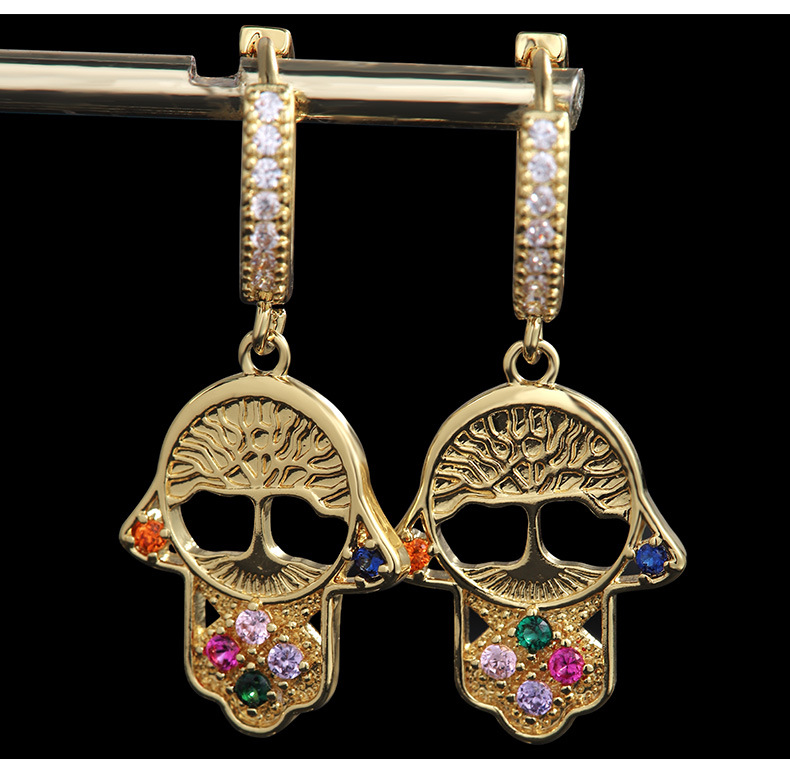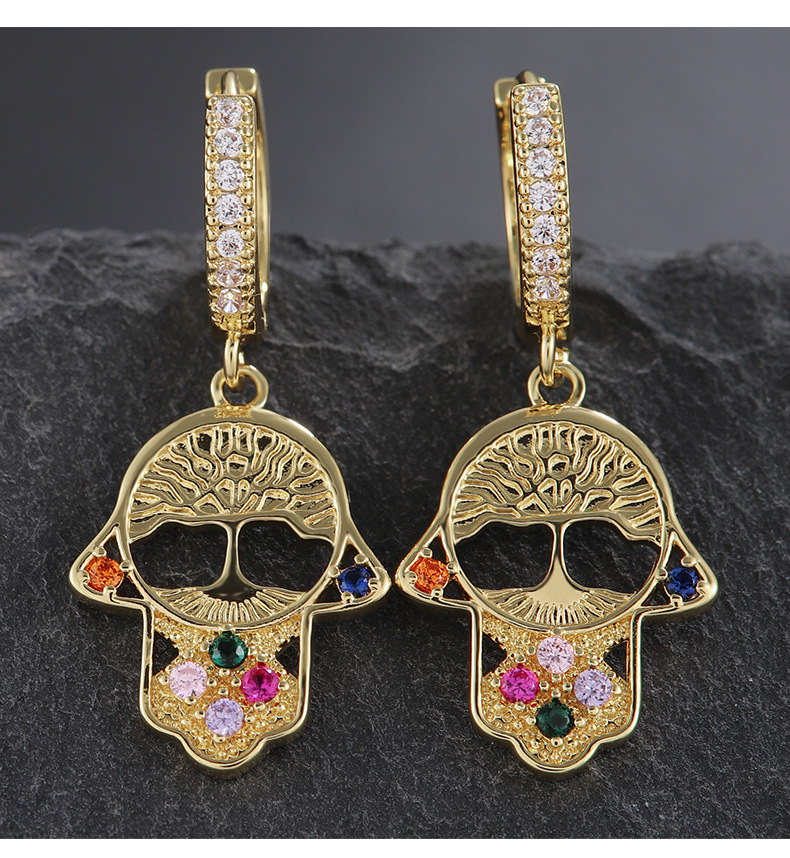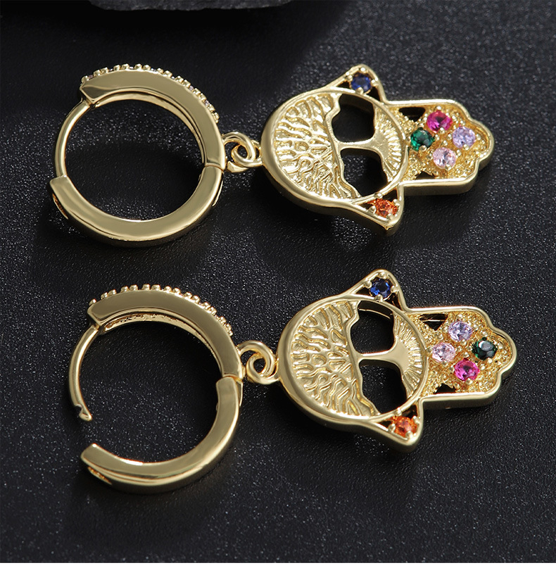 銅マイクロ象嵌ジルコンヨーロッパとアメリカの国境を越えた人気の五弁花フープイヤリング女性のためのライト高級ファッションデザインイヤリング工場新