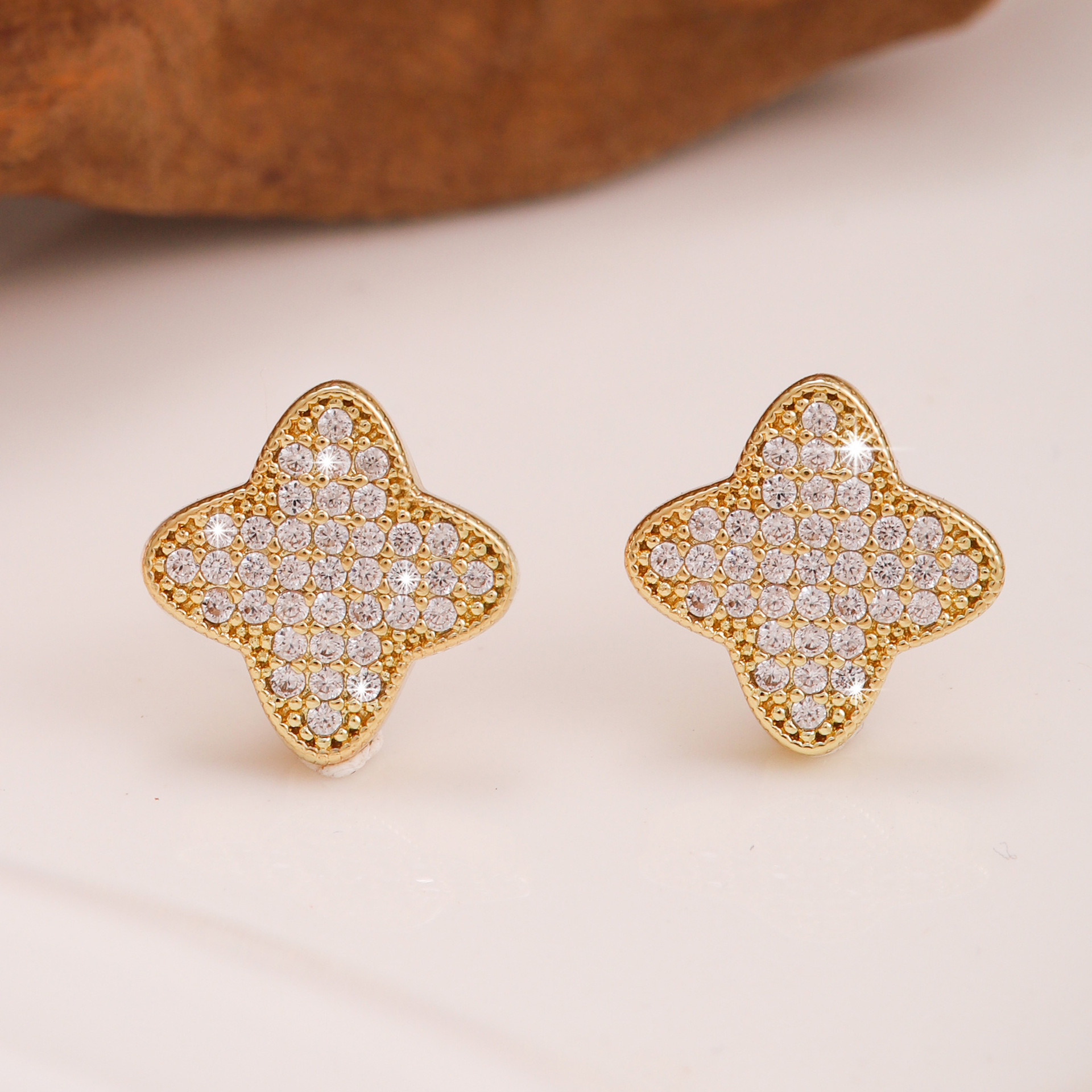 ヨーロッパとアメリカのライト高級四つ葉のイヤリング女性用、輝くジルコンハイエンドイヤリング、銅メッキ18Kゴールドイヤリング、工場イヤリング
