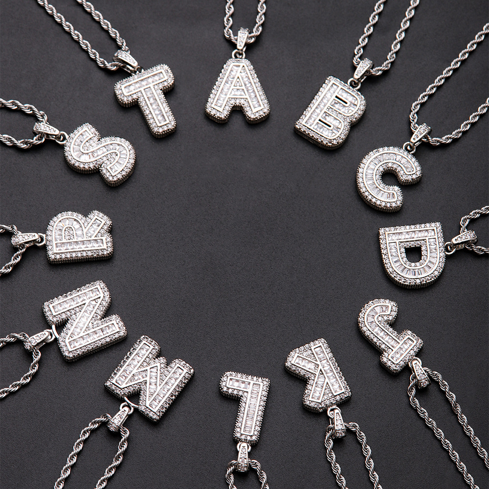 欧米のクロスボーダーの人気アイスキャンディーの英語のアルファベットのジルコンのネックレスはファッションの高級感に合わせて色が落ちません。